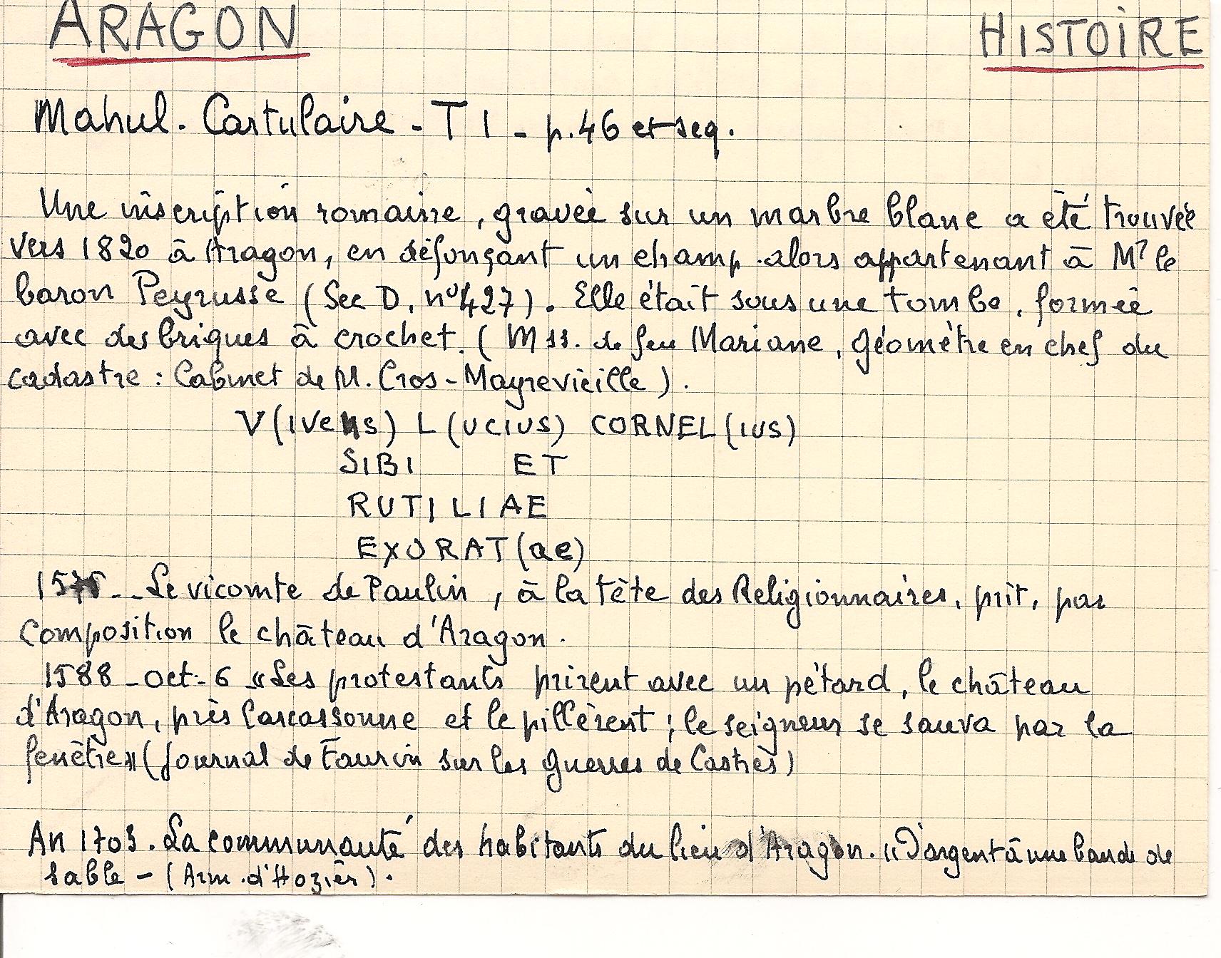 Accueil > Informations par lieu (communes, autres) > Communes dont le nom commence par A > Aragon