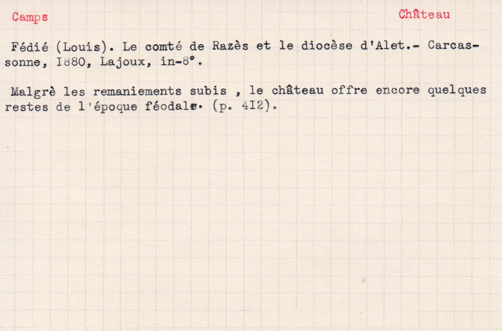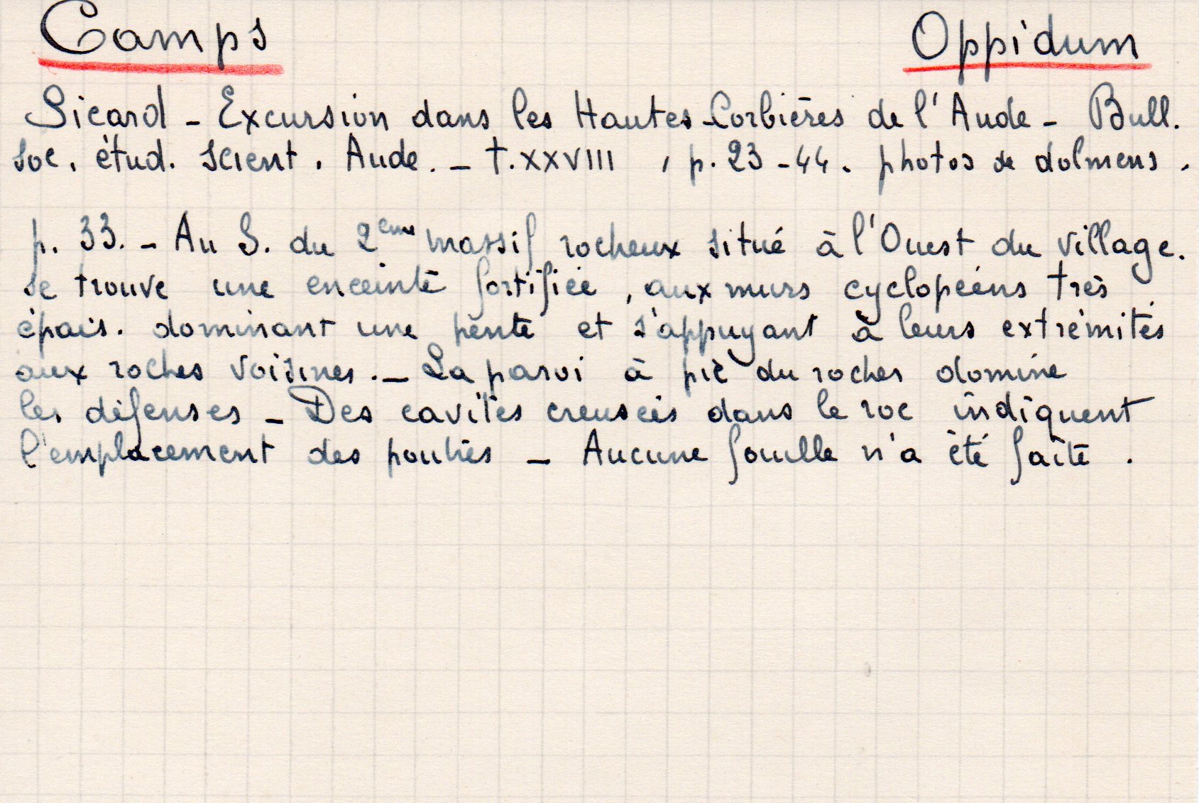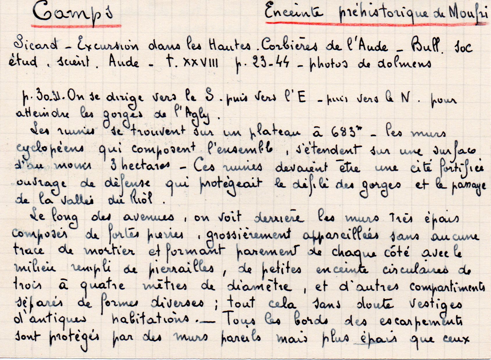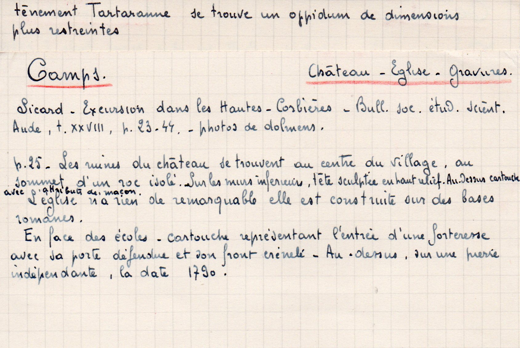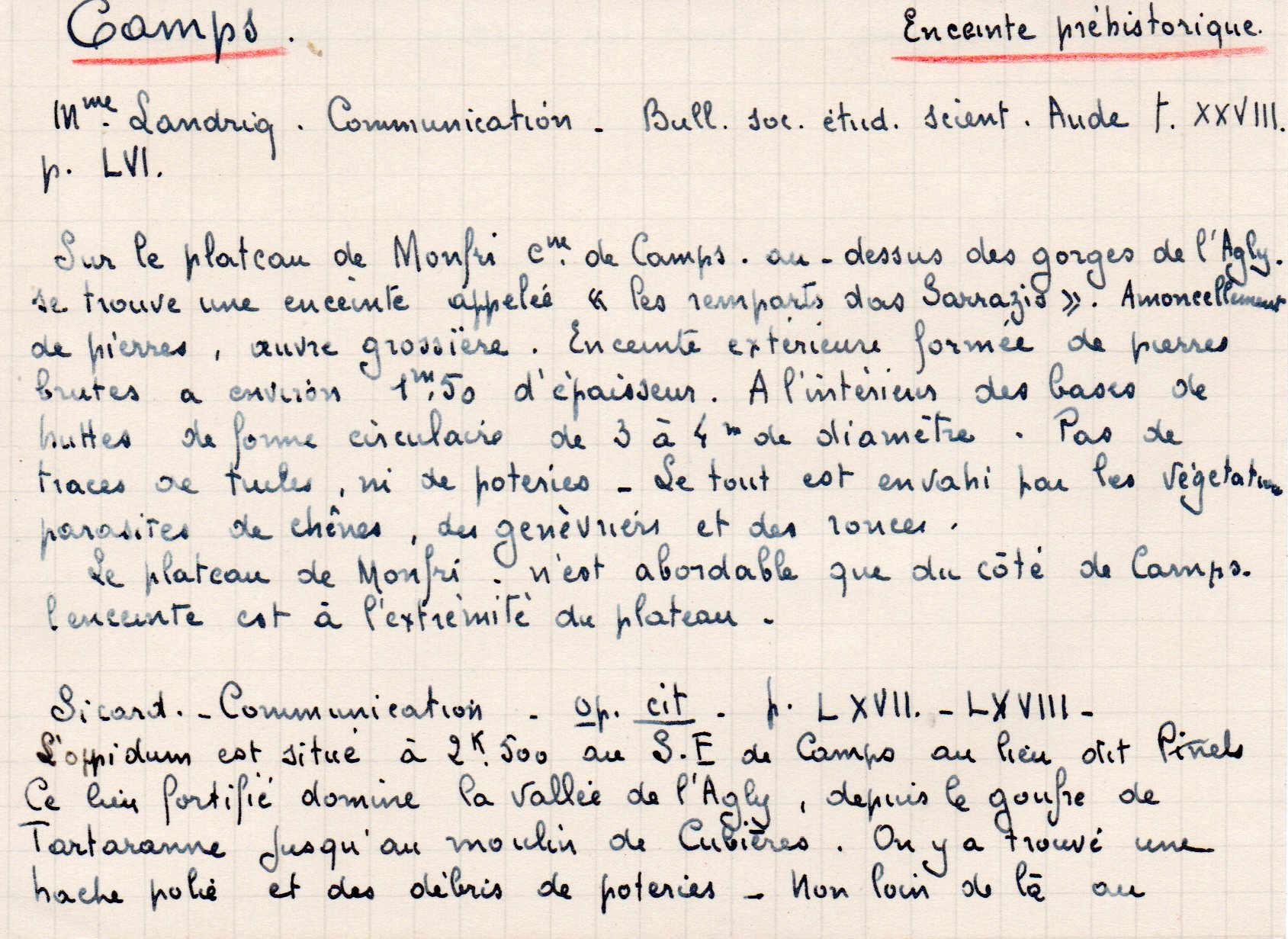 | Plateau de Monfri (Camps) | Landricq O. | Camps | 1923 | T. XXVIII | p. LVI | |