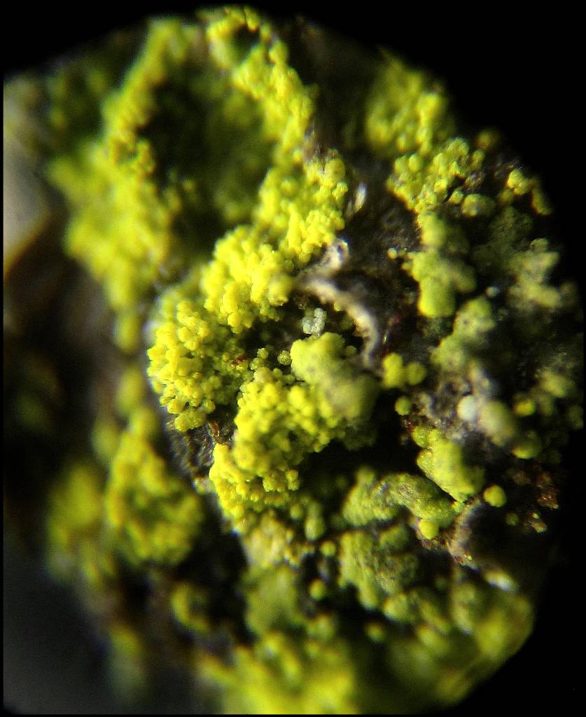 NOTE : ce lichen peut être confondu avec des espèces également jaunes à thalle très réduit ou granuleux comme Candelariella, Lecanora expallens ou Candelaria concolor.