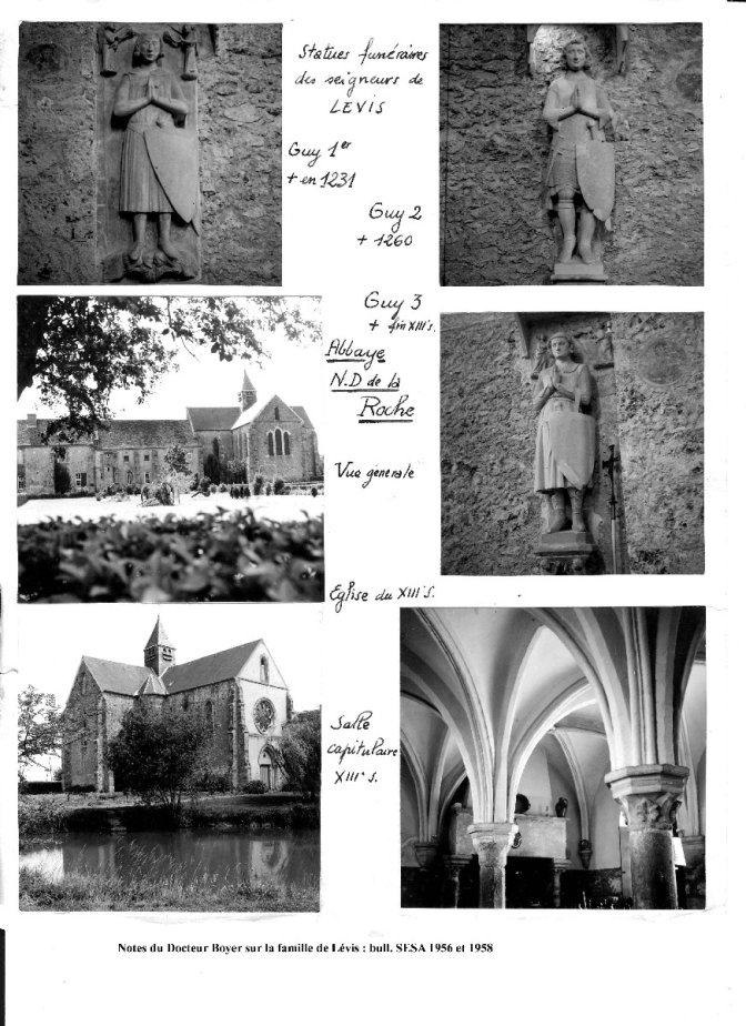 Photographies dues à M. Boyer représentant les statues funéraires de membres de la famille de Lévis ainsi que des vues de Notre-Dame-de-la-Roche.