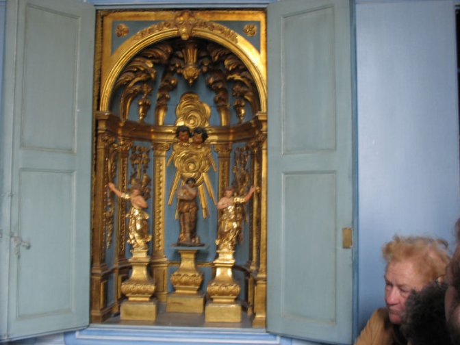 Le bureau du maire réserve une surprise : dans un placard se trouve un oratoire décoré d’anges. A l’origine cette pièce était une chapelle.