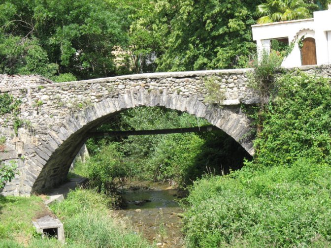 Le Pont Vieux construit en pierre au XVIIe siècle a remplacé un ouvrage en bois à culées maçonnées datant probabalement du Moyen Age. Il était flaqué à son amont rive droite d’un moulin démoli il y a une quarantaine d’années.