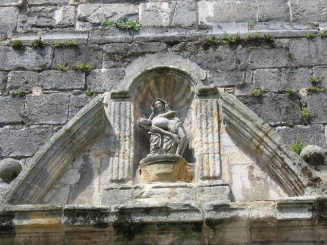 Nous avons terminé par la visite de l’église datant du XIVe siècle. A droite du portail quelques pierres présentent des sculptures. A l’intérieur une belle piéta est située dans une chapelle.