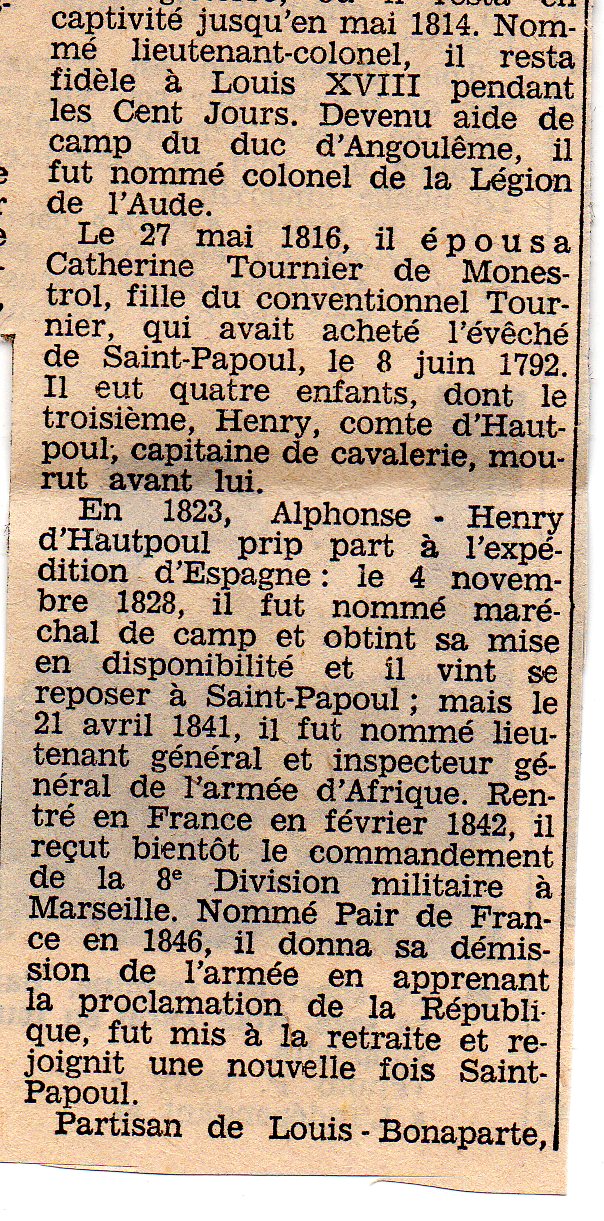 | Jean-Henry d’Hautpoul-Felines seigneur de Lasbordes | Azais R. | Lasbordes | Biographie | 1977 | T. LXXVII | p. 165 |