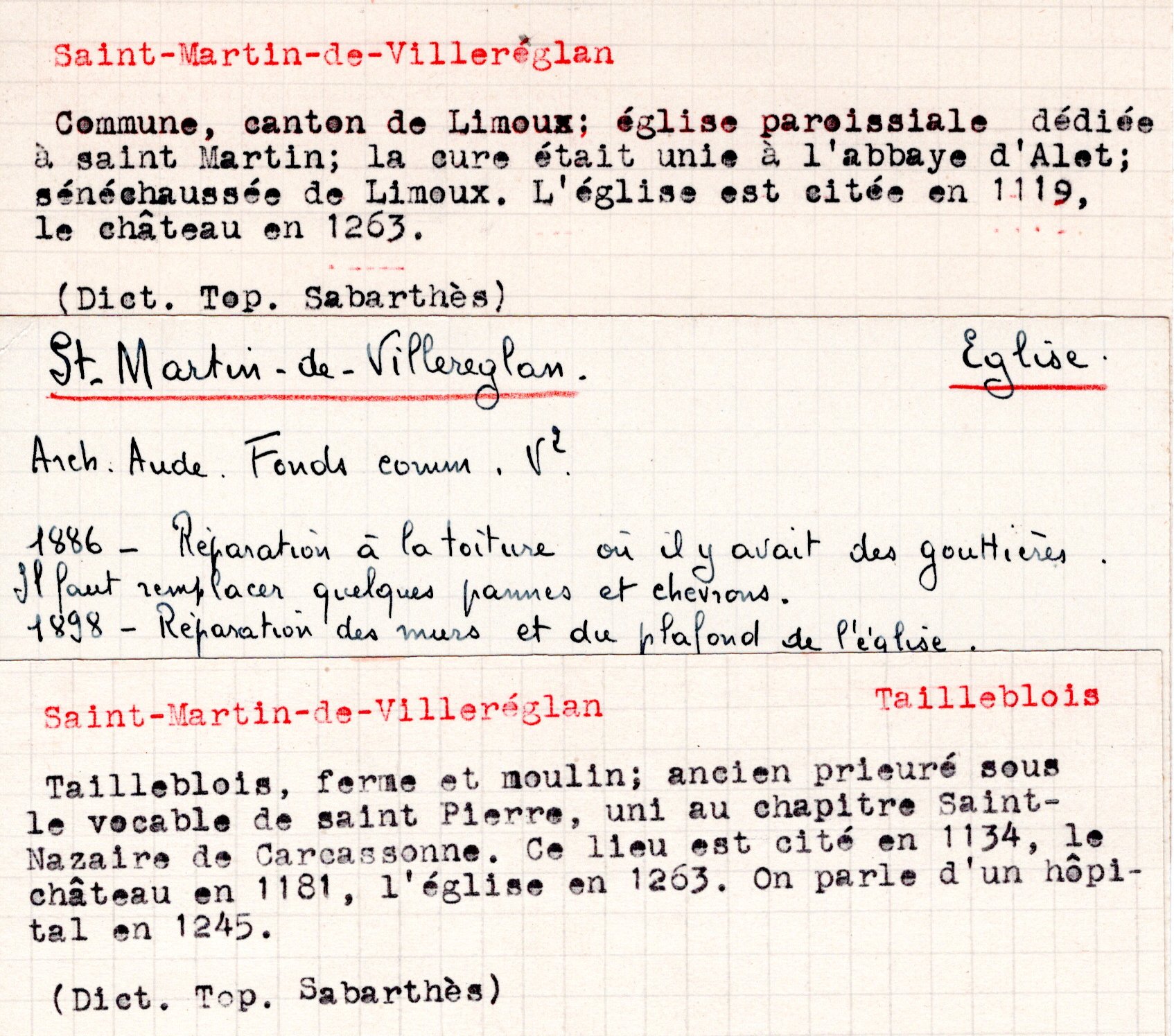 | Sarcophage | Gibert U. | Saint-Martin de Villereglan | Archéologie sépultures | 1955 | T. LVI | p. XXIX |