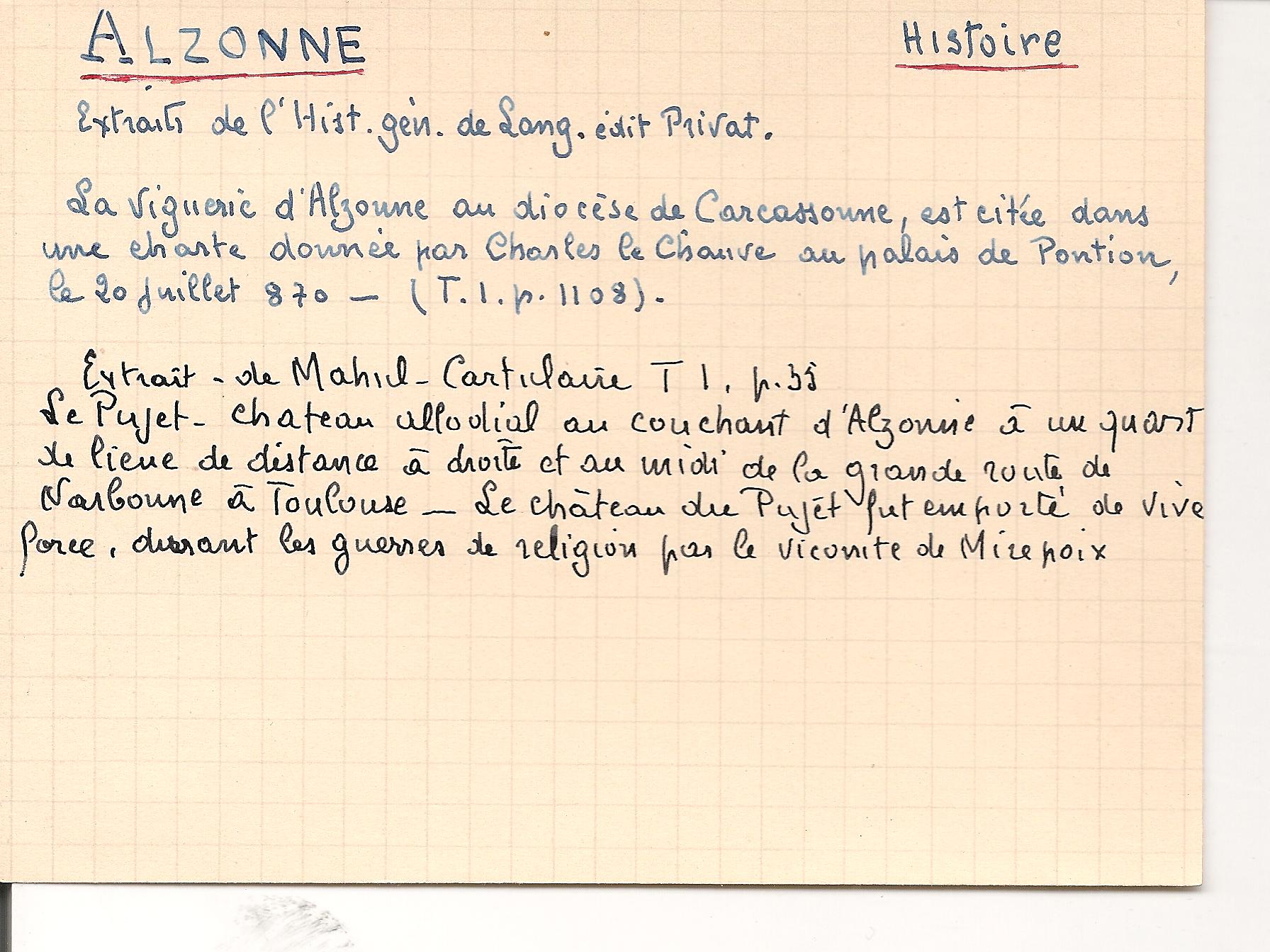 | Alzonne et Sesquières | Rebelle G. | Alzonne | Excursion | 1893 | T. IV | p. 89 |