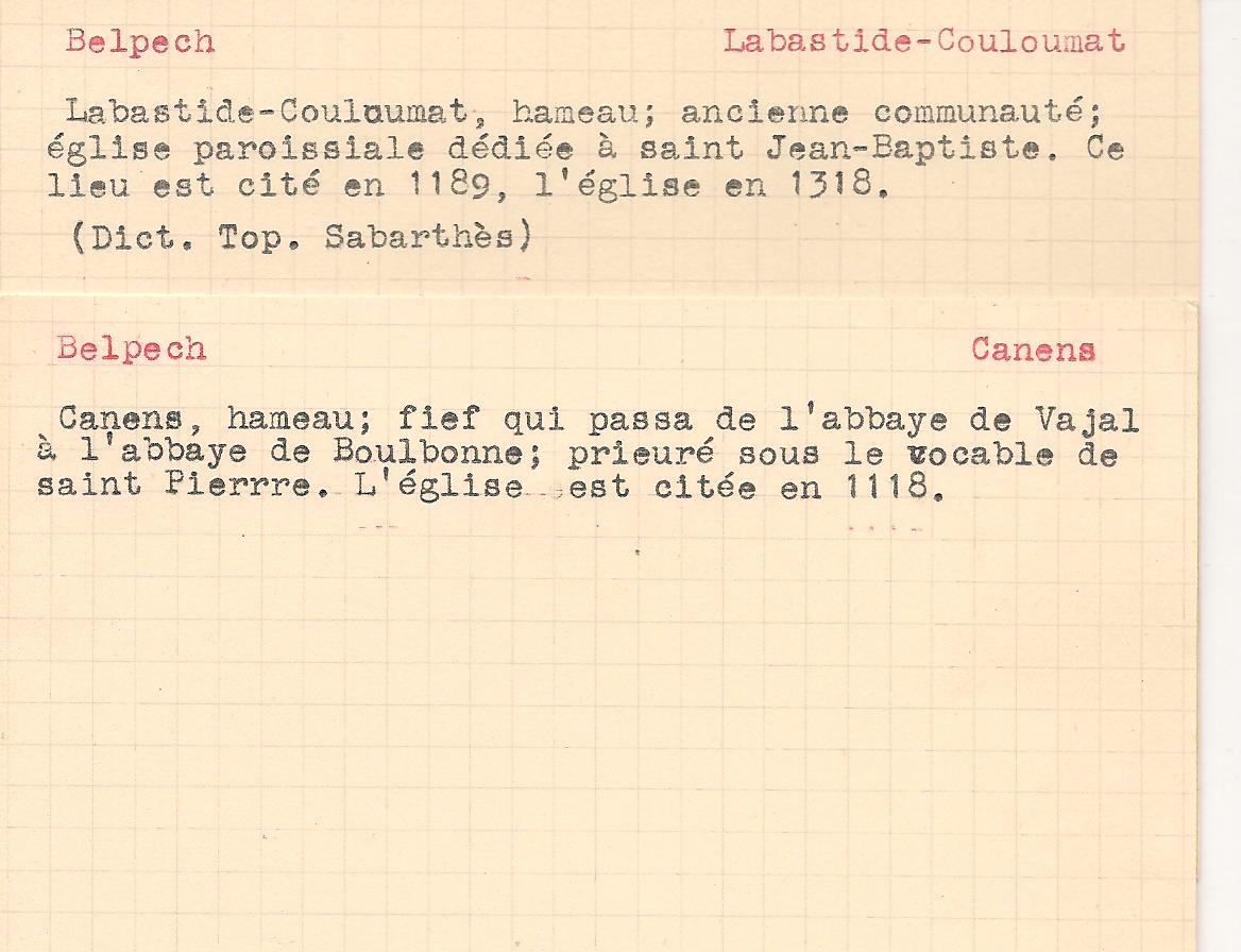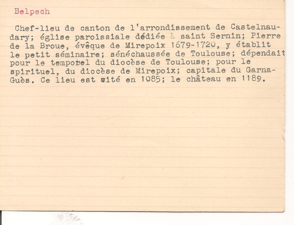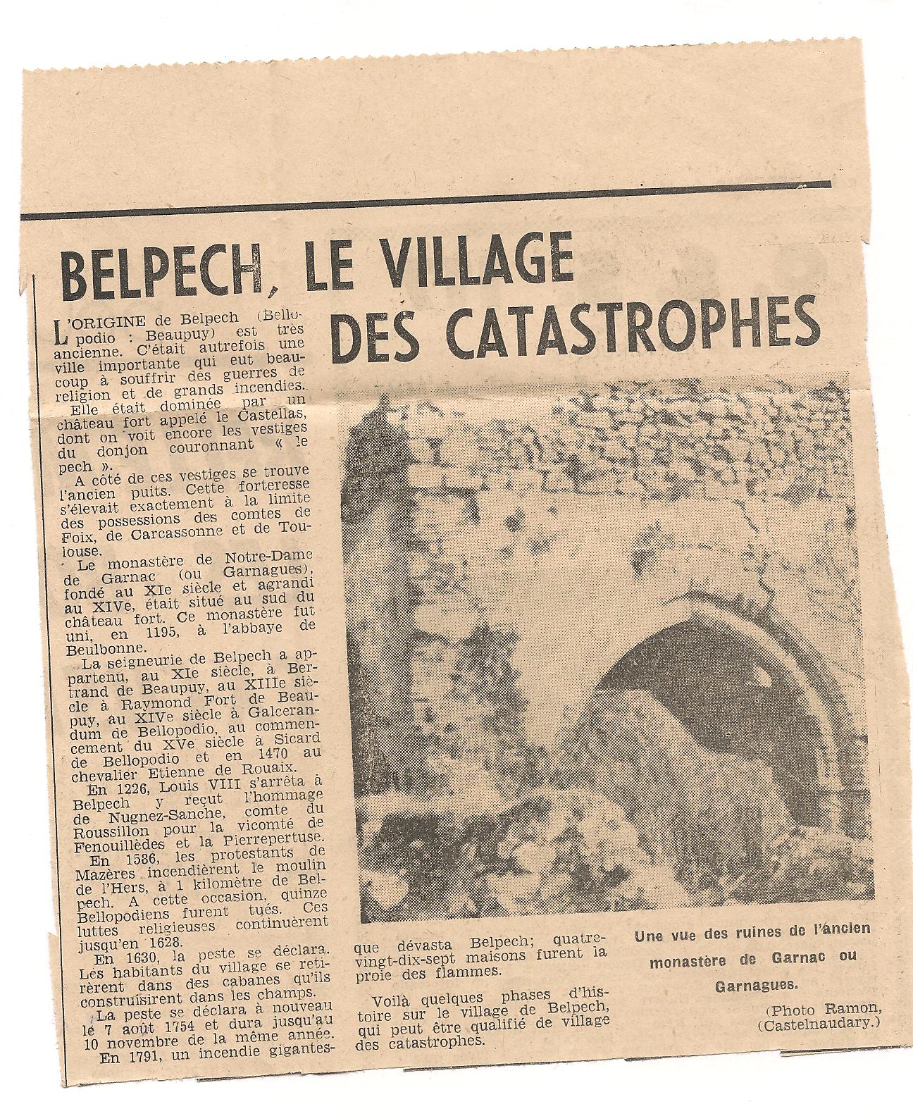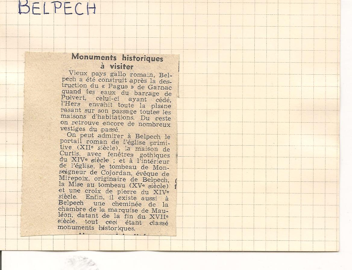 | Notes sur Belpech | Blaché M-L. | Belpech | Monographie | 1958 | T. LIX | p. 14 |