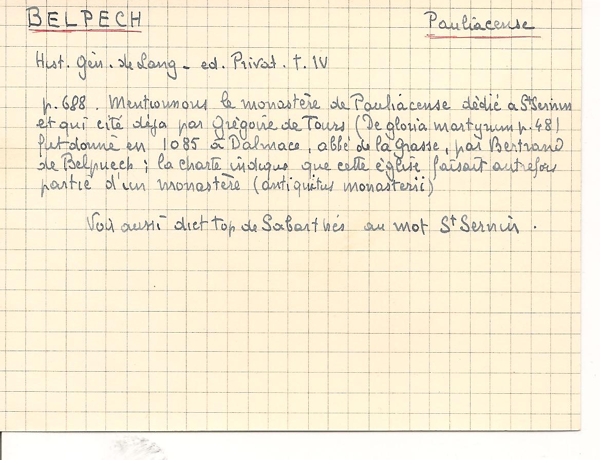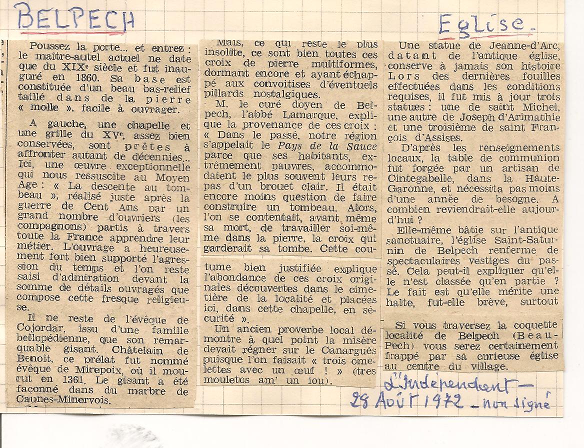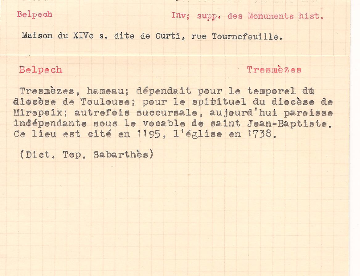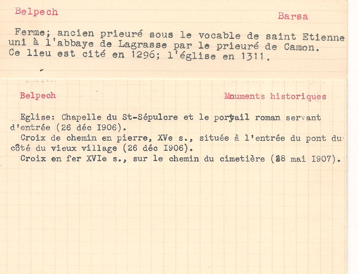 | Notes sur Belpech | Blaché M-L. | Belpech | Monographie | 1958 | T. LIX | p. 14 |