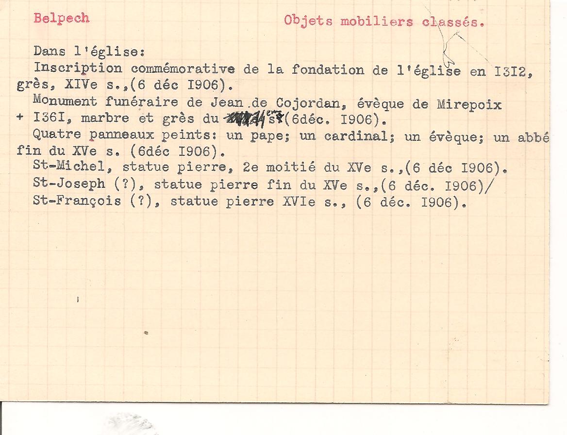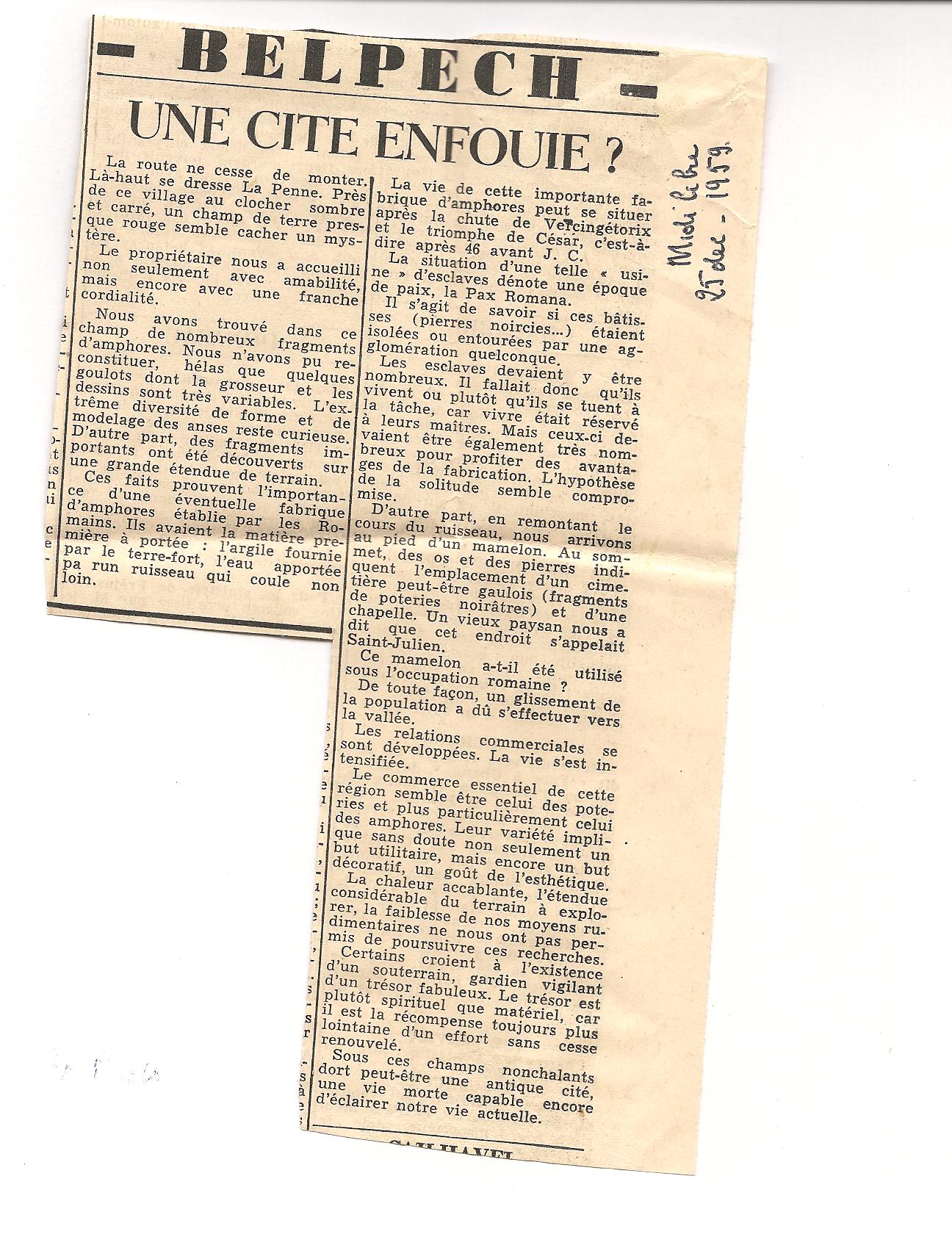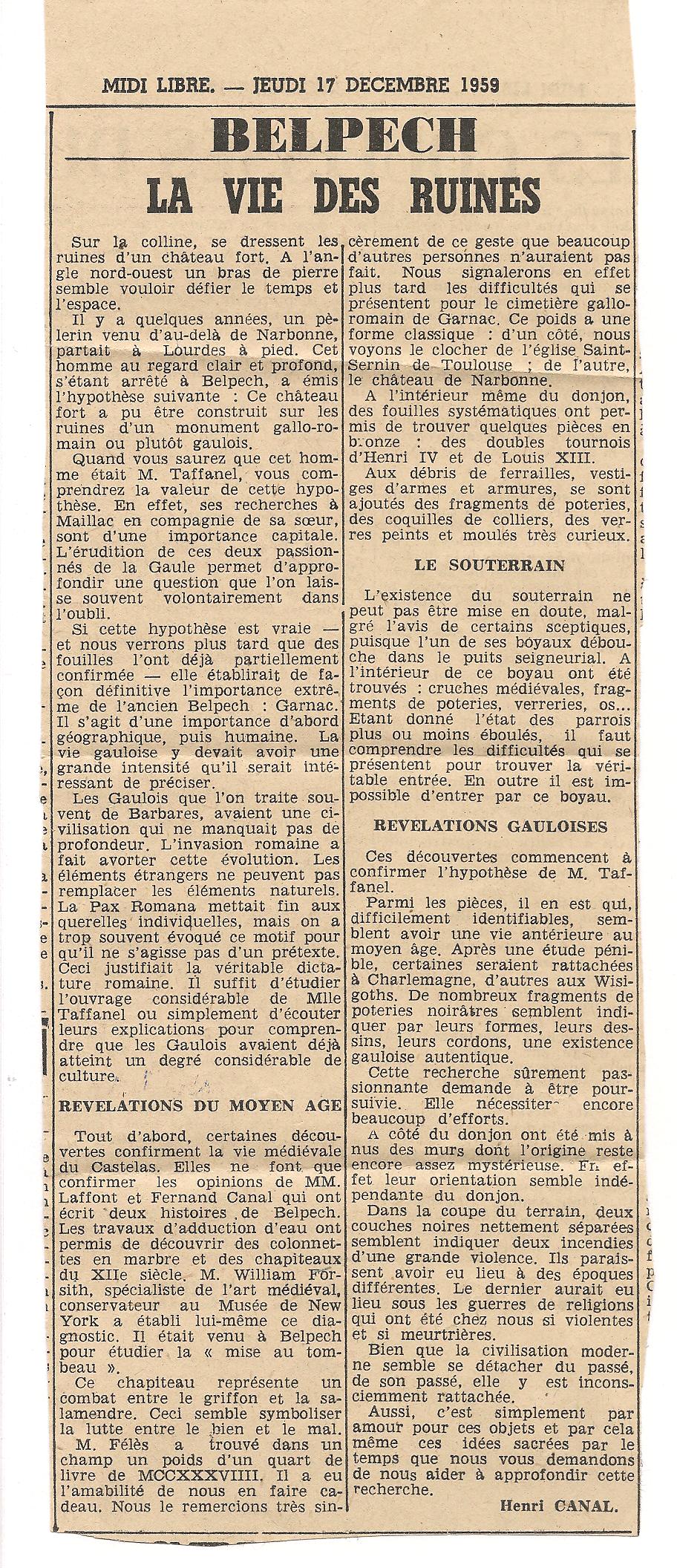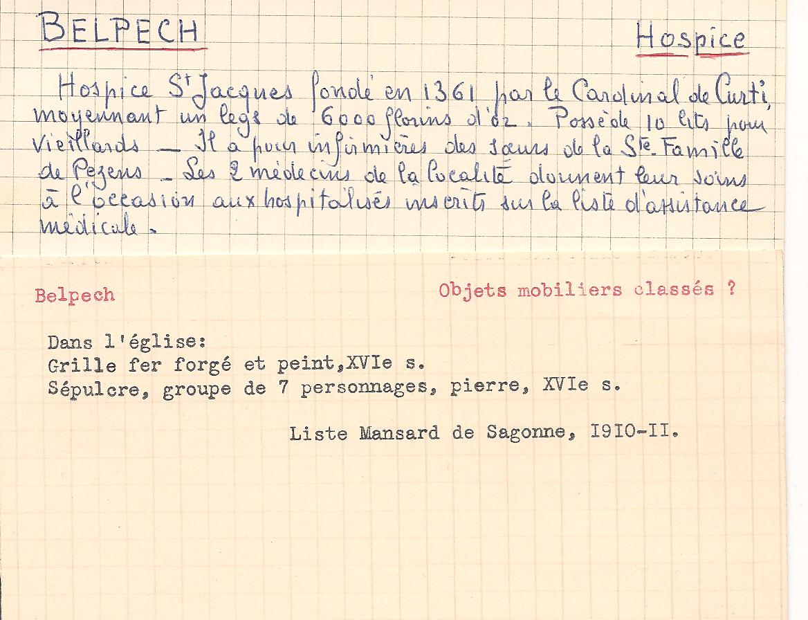| Notes sur Belpech | Blaché M-L. | Belpech | Monographie | 1958 | T. LIX | p. 14 |
