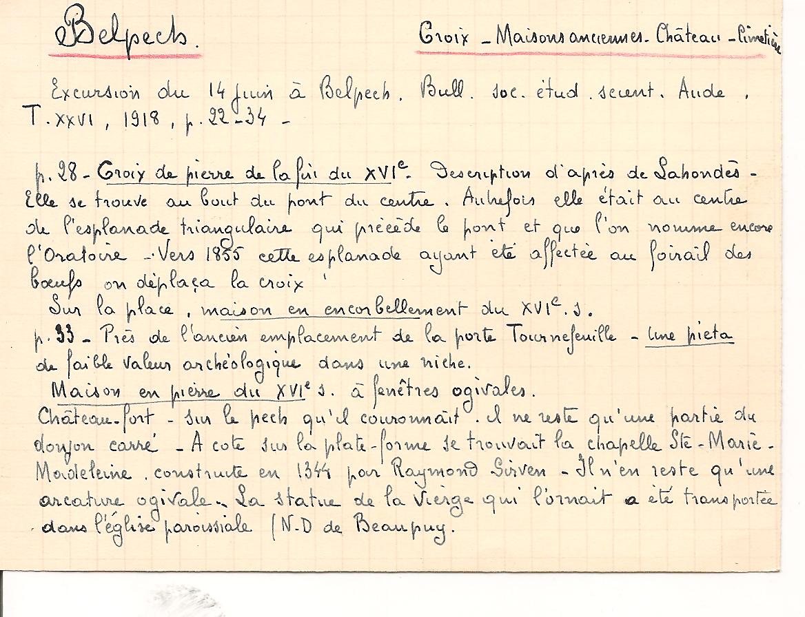 | Belpech | Gavoy L. | Belpech | Excursion | 1918 | T. XXVI | p. 22 |