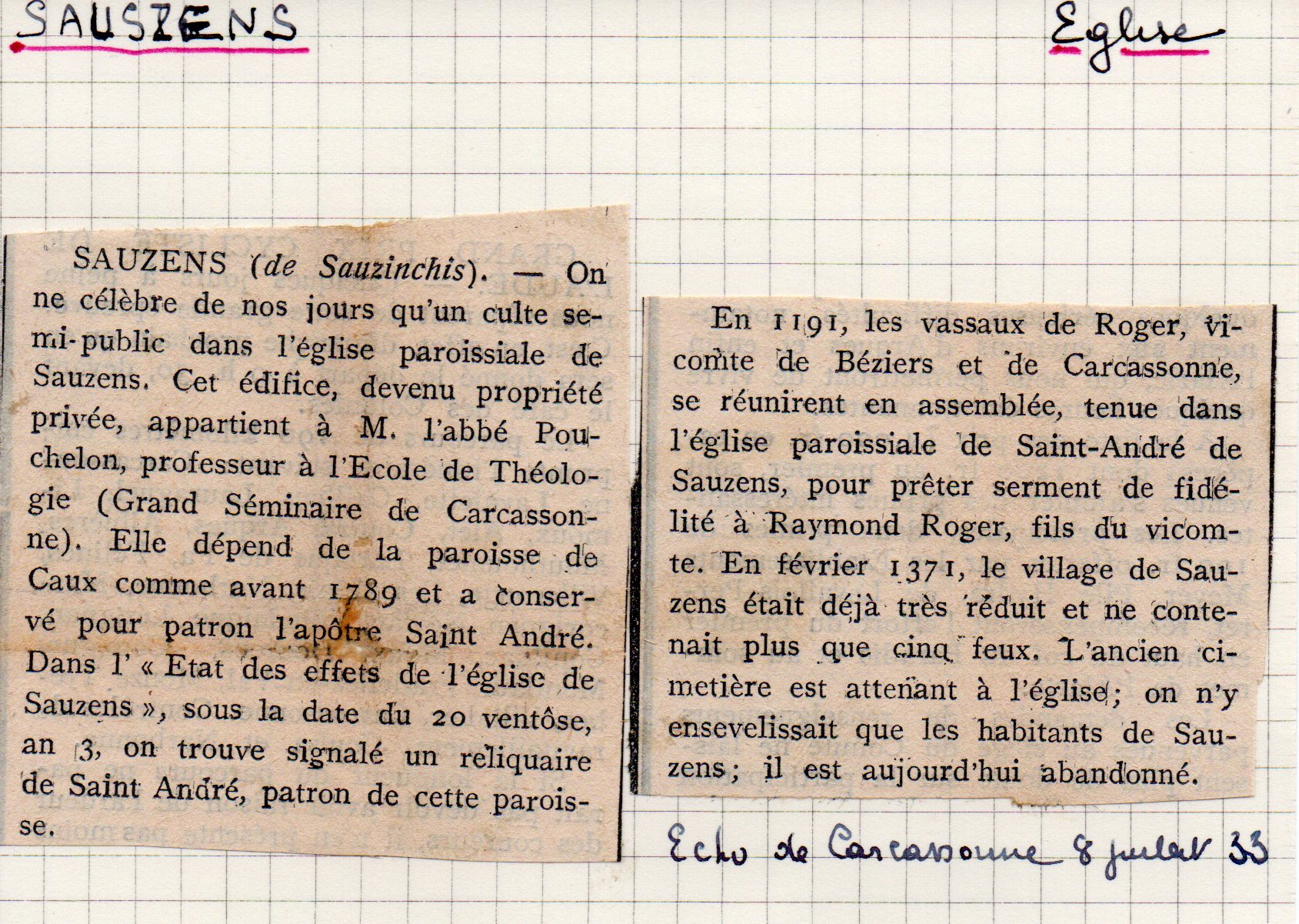 | Sites archéologiques près de Pezens et de Caux-et-Sauzens | Courtieu J. | Pezens - Caux-et-Sauzens | Archéologie | 1971 | T. LXXI | p. 20 |