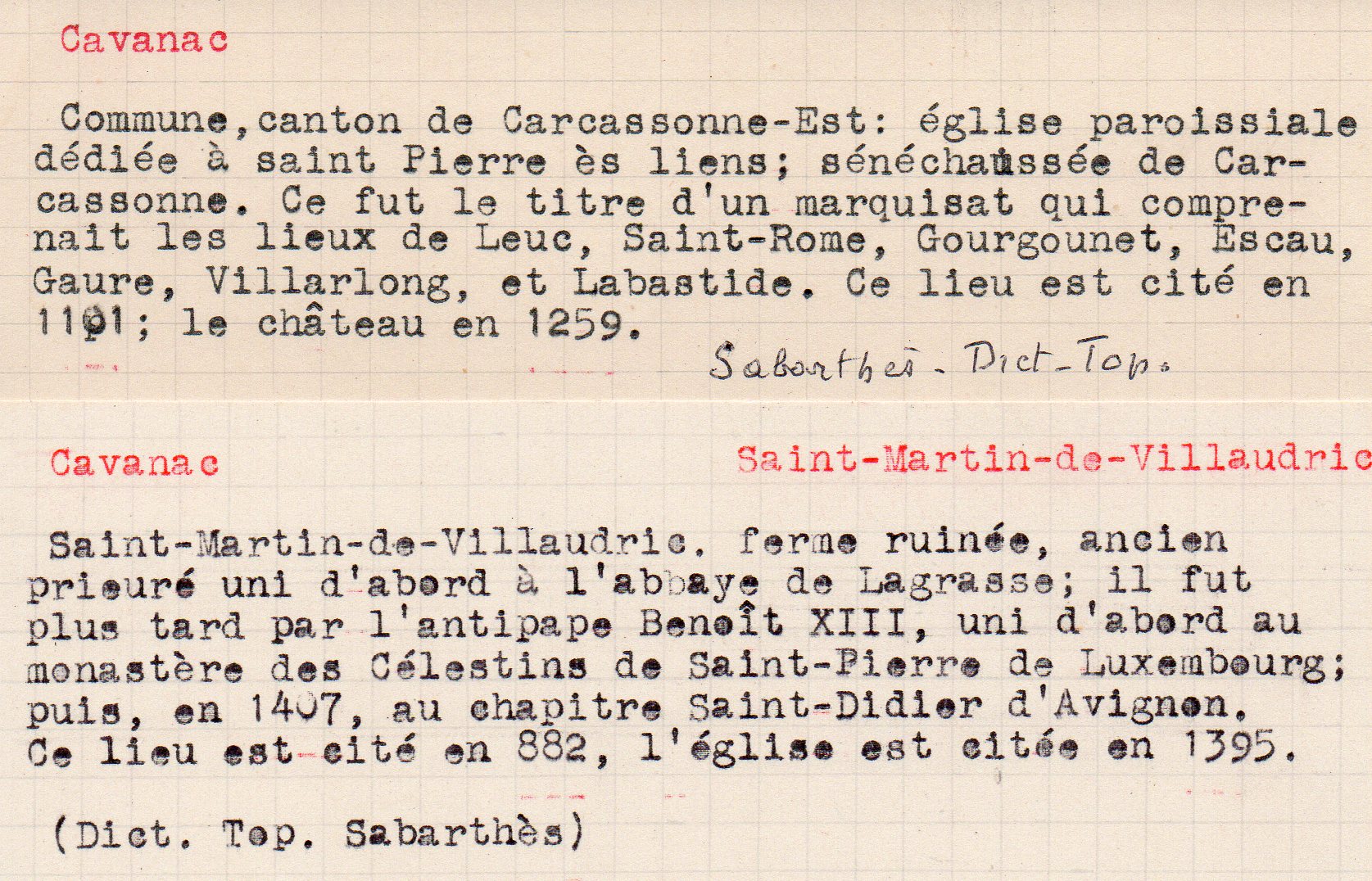 | Silos creusés dans le roc des caves du château de Cavanac | Fages P | Cavanac | 1940 | T. XLIV | p. LXXXI | |