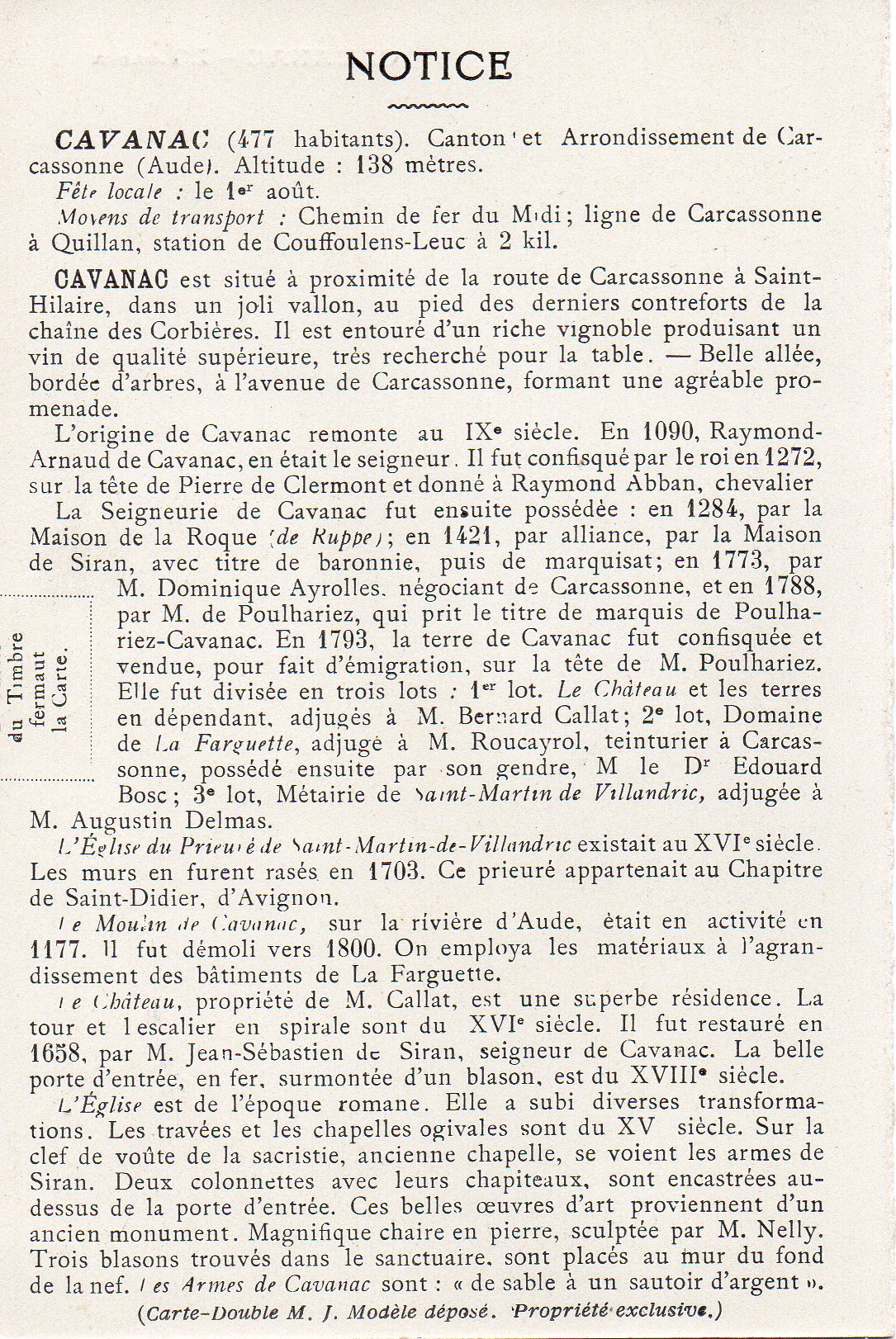 | Cavanac (Nouvelles découvertes) | Fages A. | Cavanac | Archéologie | 1909 | T. XX | p. L |