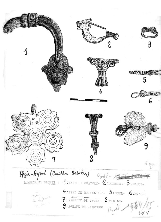 Cette illustration représentant des objets en bronze est associée aux informations dues à Régis Aymé et publiées dans le bulletin LXV.