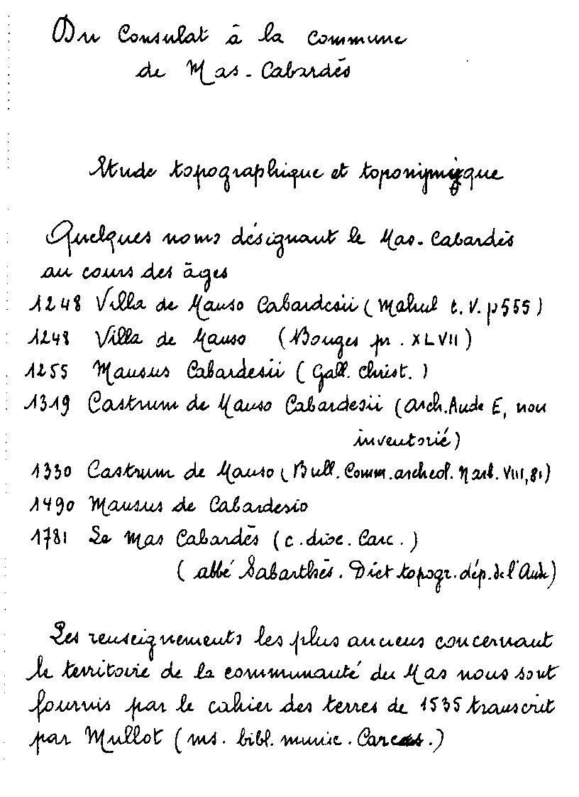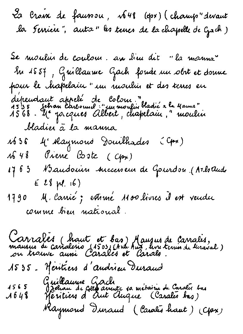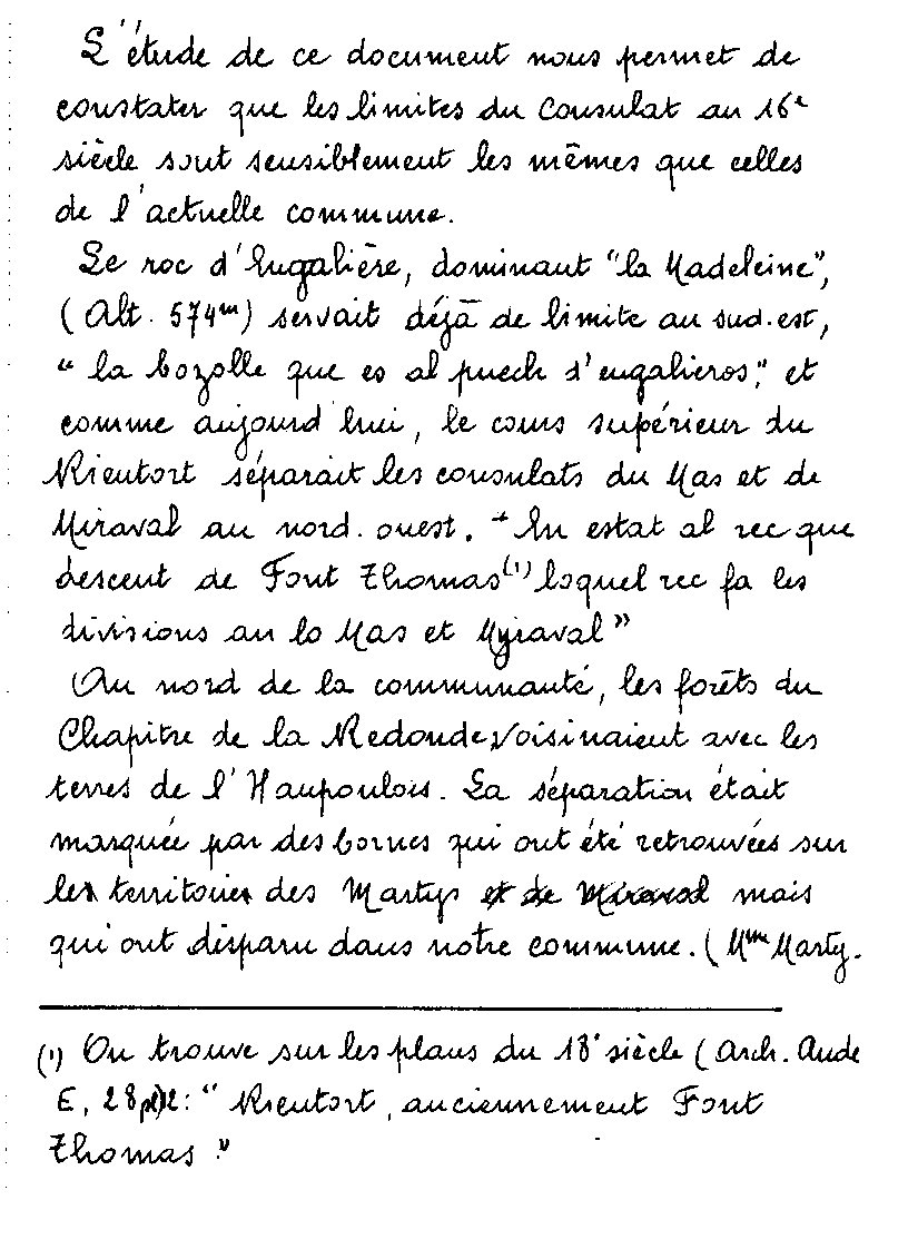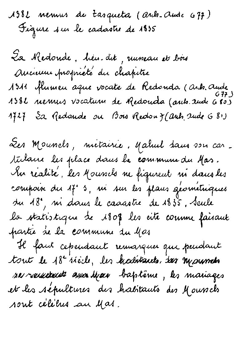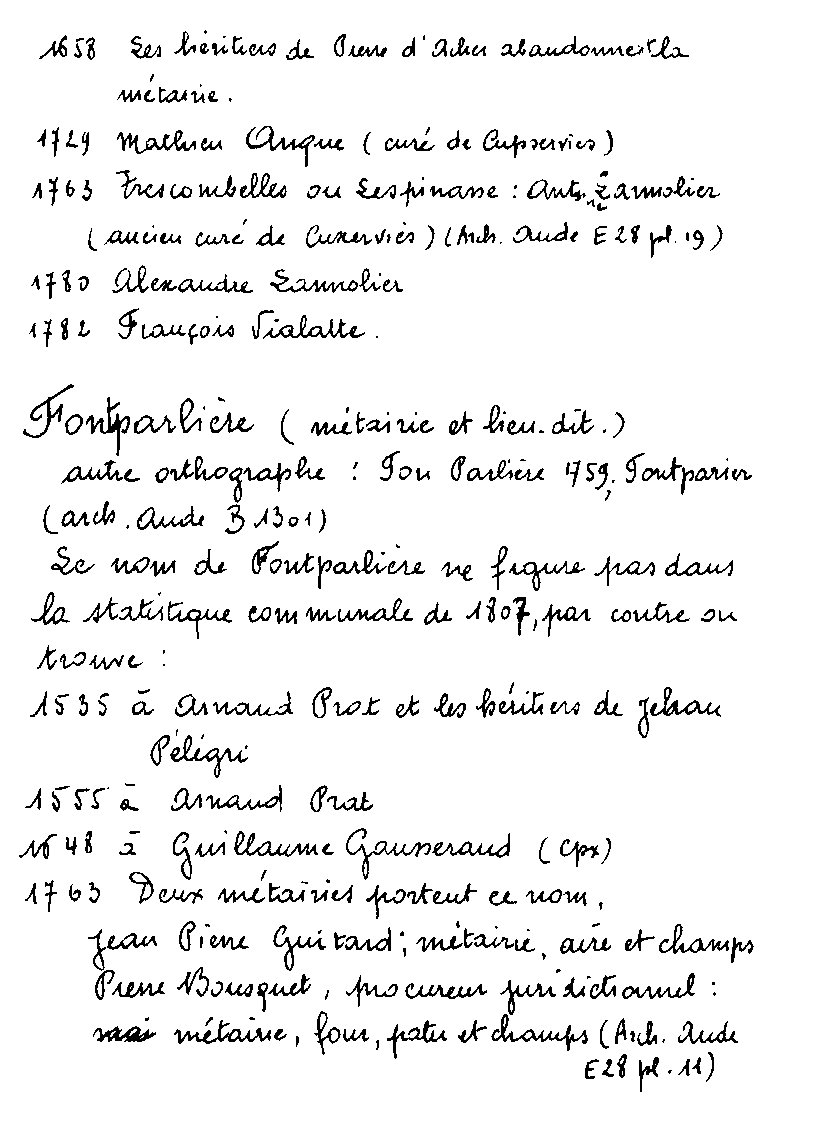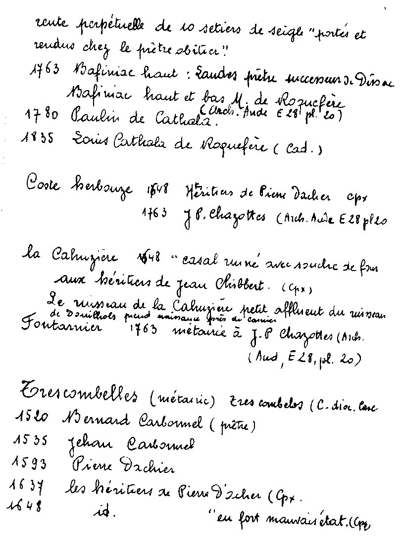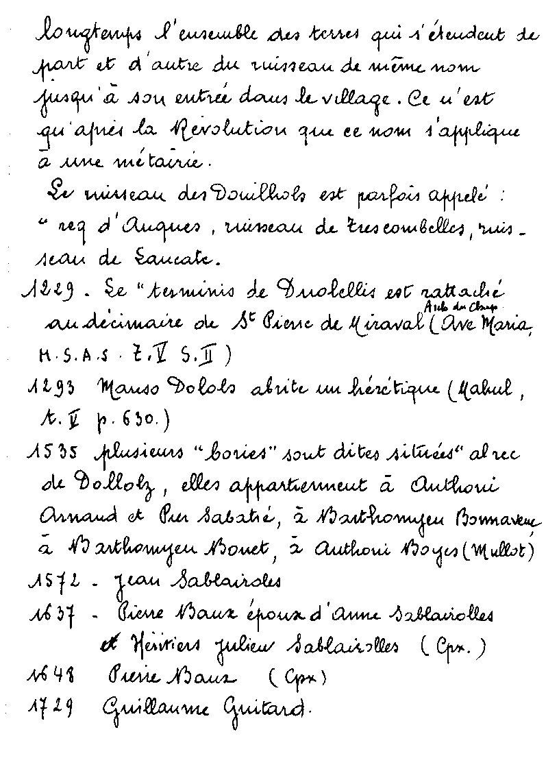Étude topographique et toponymique, métairies, lieux-dits, quartier ruraux (Douilhos, Marionbel, Baffignac, Trescombelles, Fontparlière, La Ferrière, Faussou, Carrabès, Le Bouget, Mariongach, La Louvière, La Gourgne, La Tasquière, La Redoude, Les Moussels)
