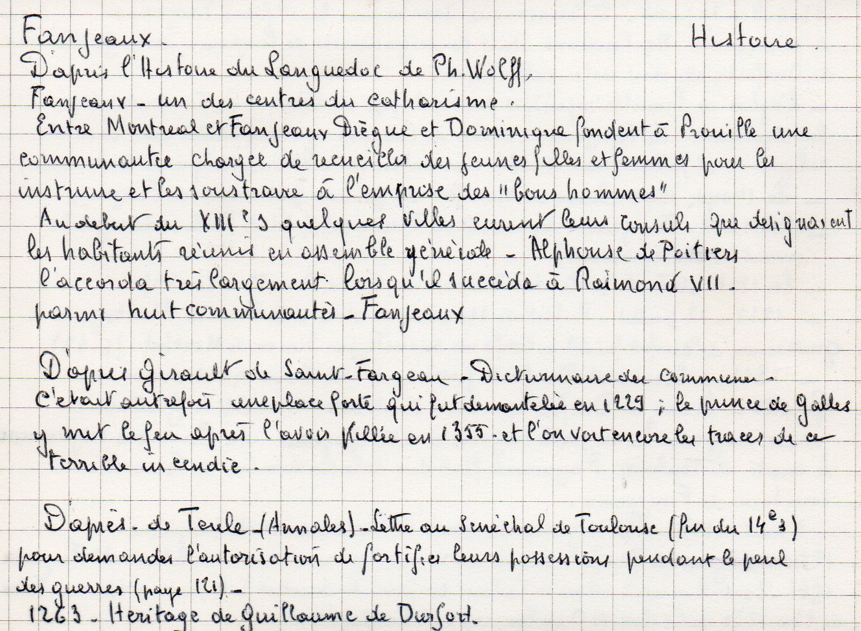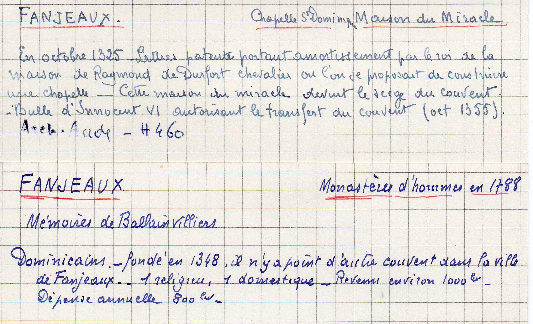 | Raymond Terré et la fondation du couvent des prêcheurs de Fanjeaux (1348-1367) | Ferradou B. | Fanjeaux | Histoire - Moyen Age | 2001 | T.CI | p. 61 |