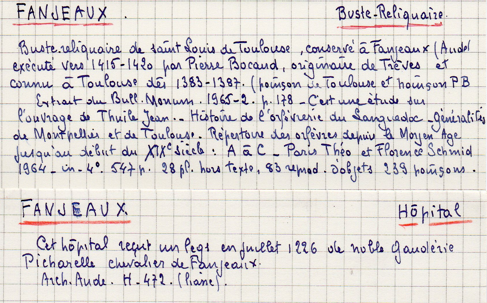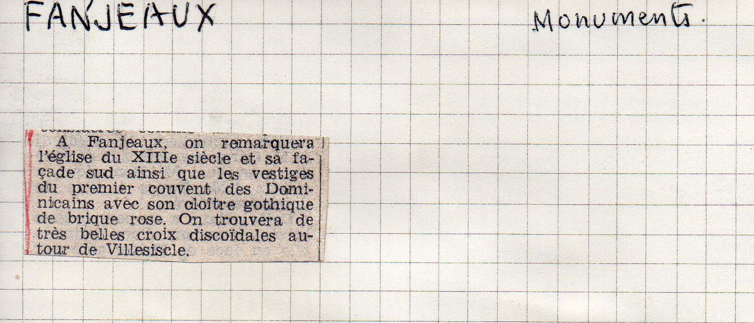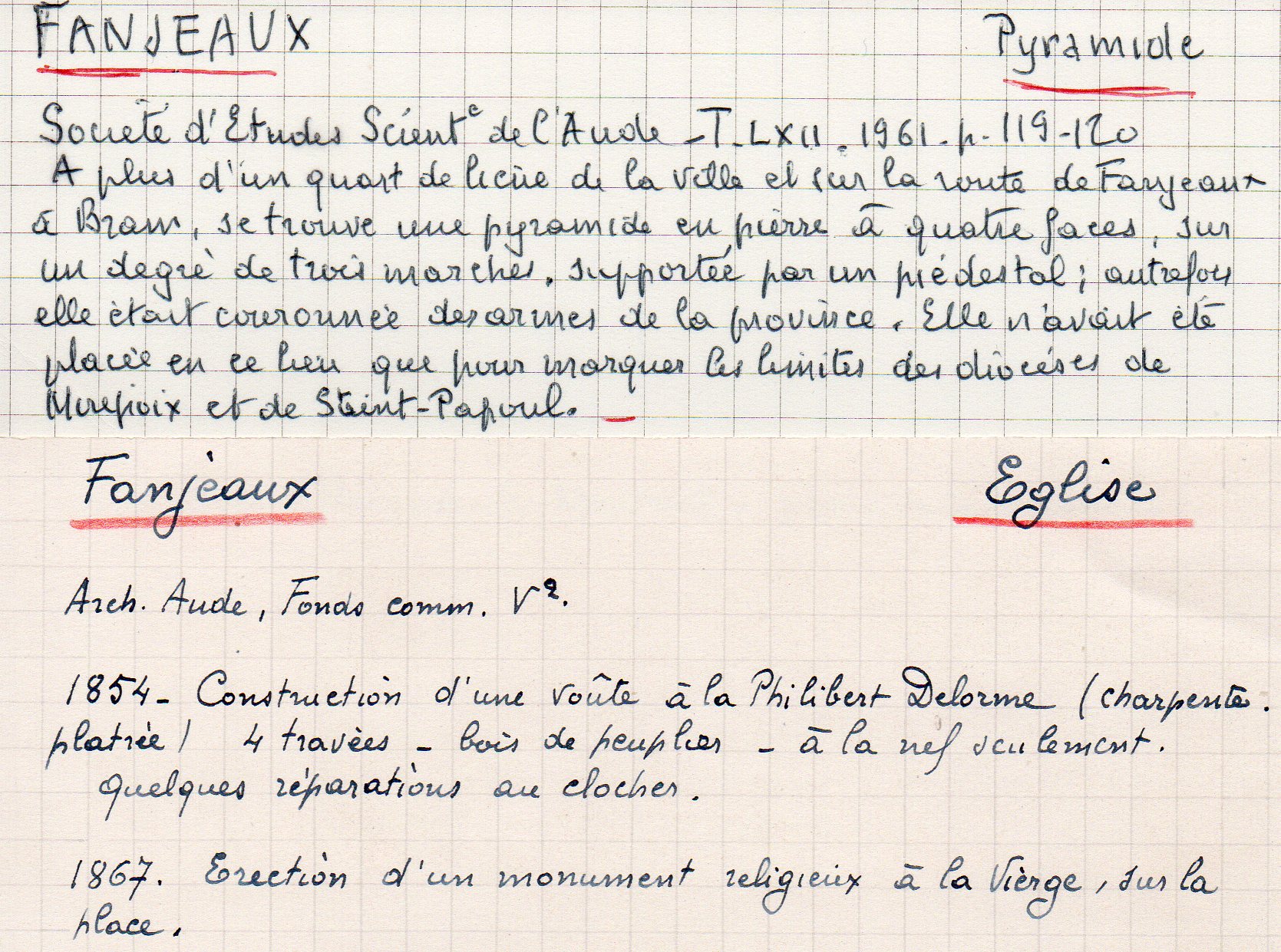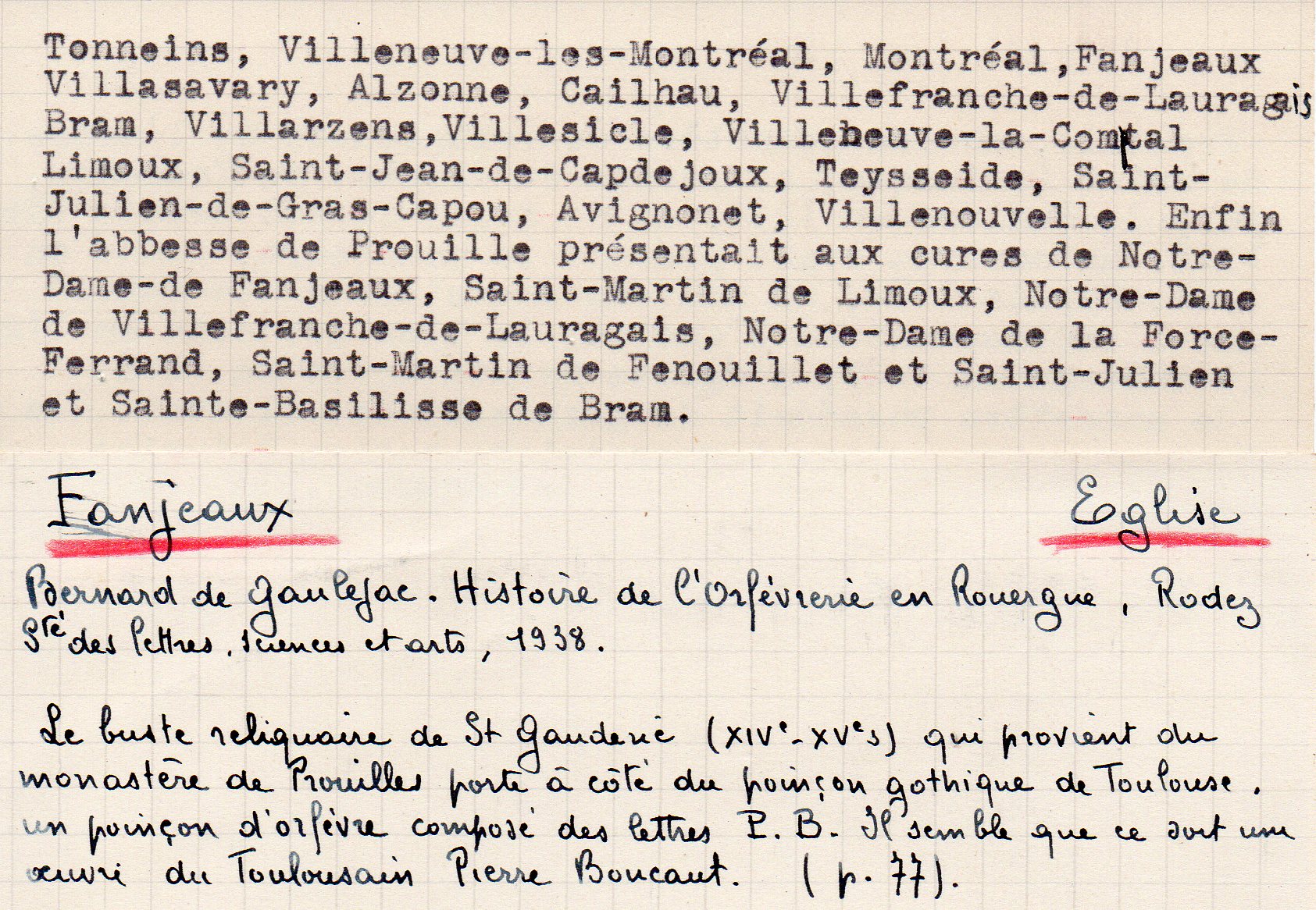 | Notes historiques et archéologiques sur Fanjeaux | Boyer Ch. | Fanjeaux | Archéologie | 1961 | T. LXII | p. 119 |