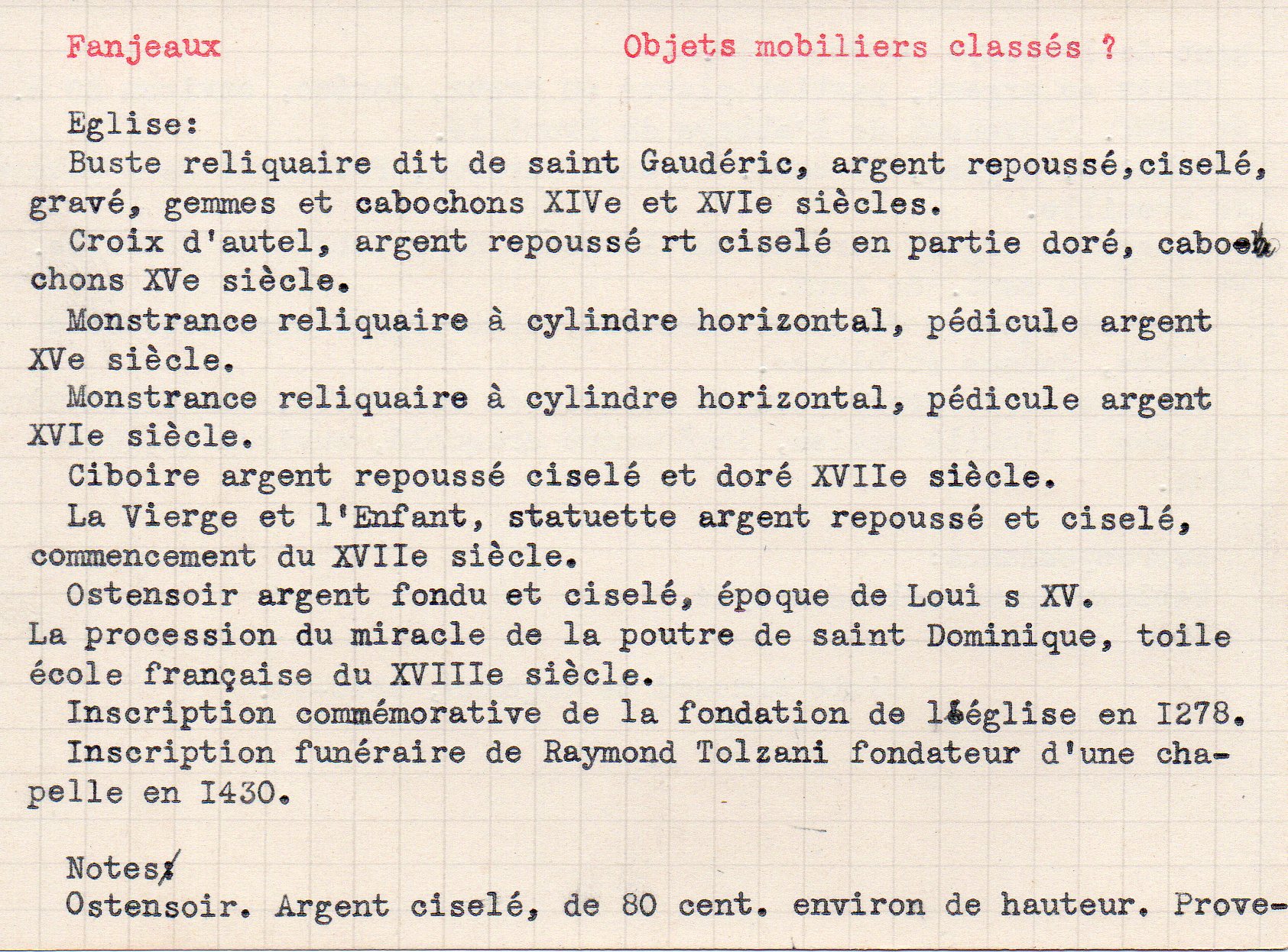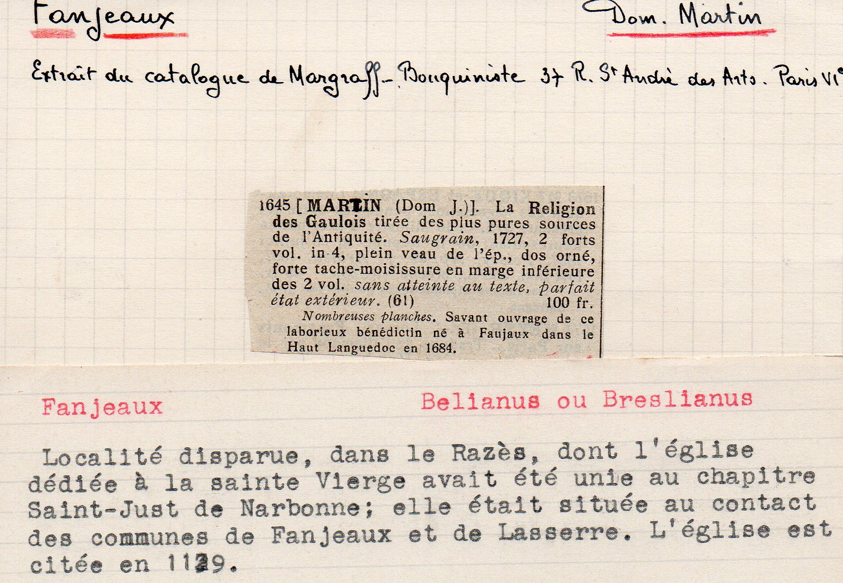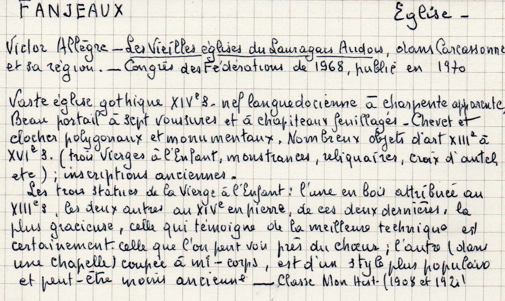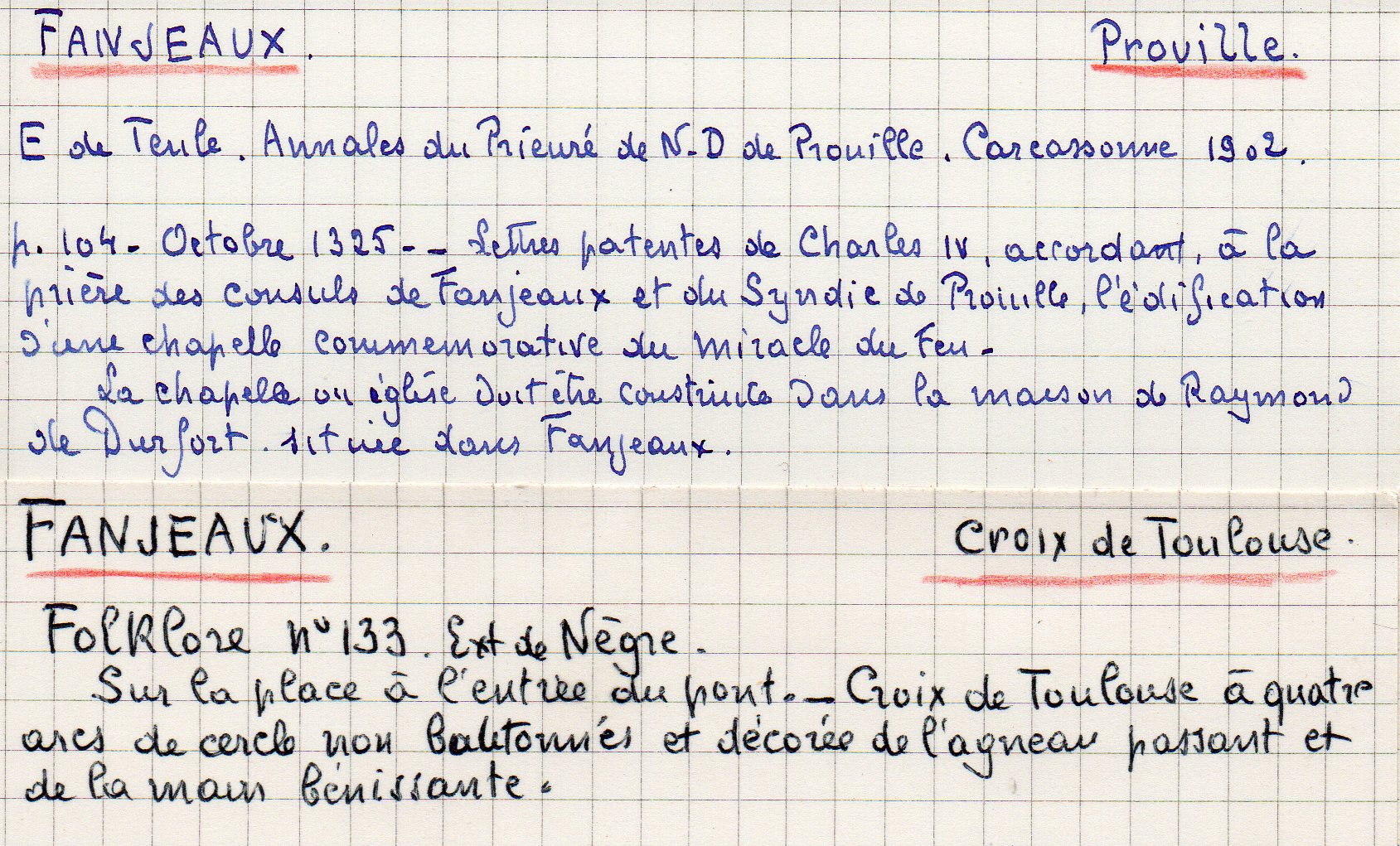 | Notes historiques et archéologiques sur Fanjeaux | Boyer Ch. | Fanjeaux | Archéologie | 1961 | T. LXII | p. 119 |