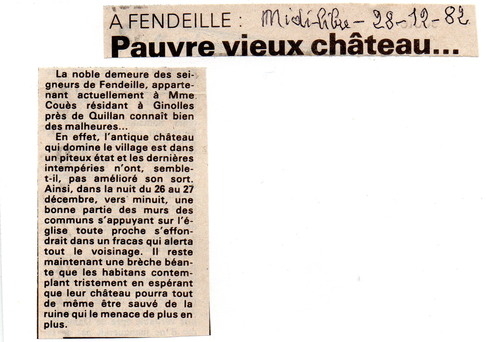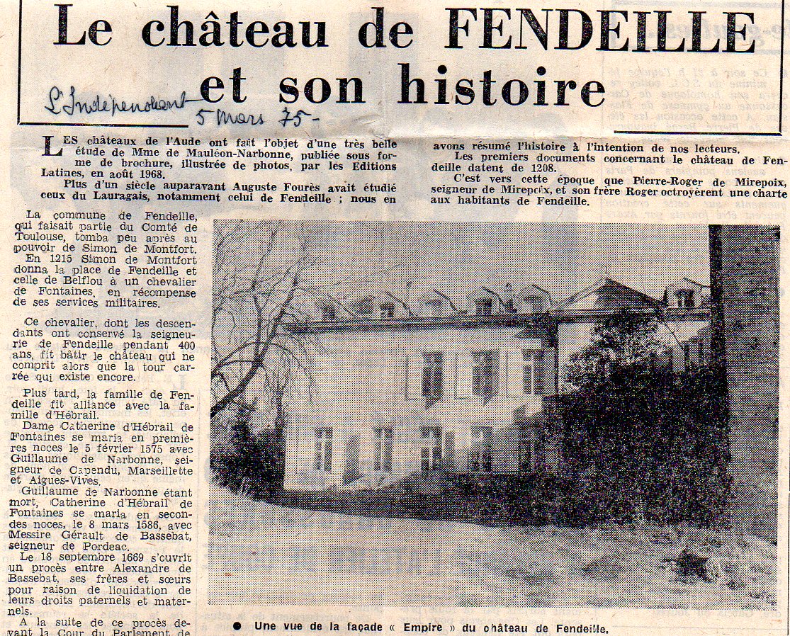 Accueil > Informations par lieu (communes, autres) > Communes dont le nom commence par F > Fendeille
