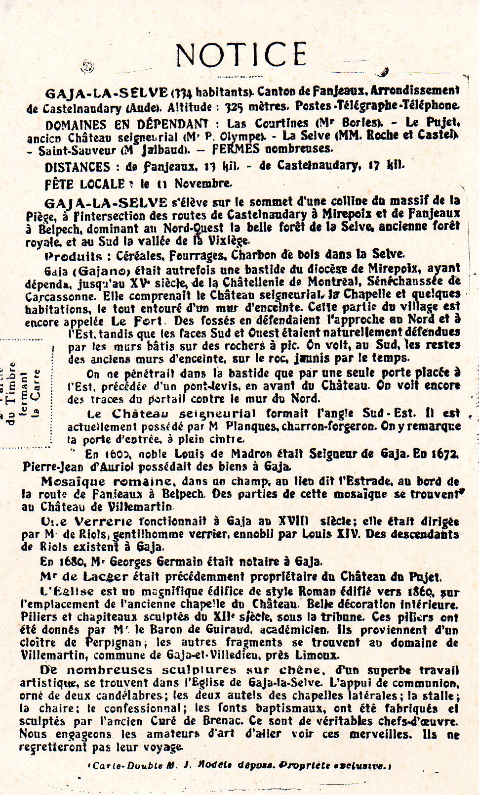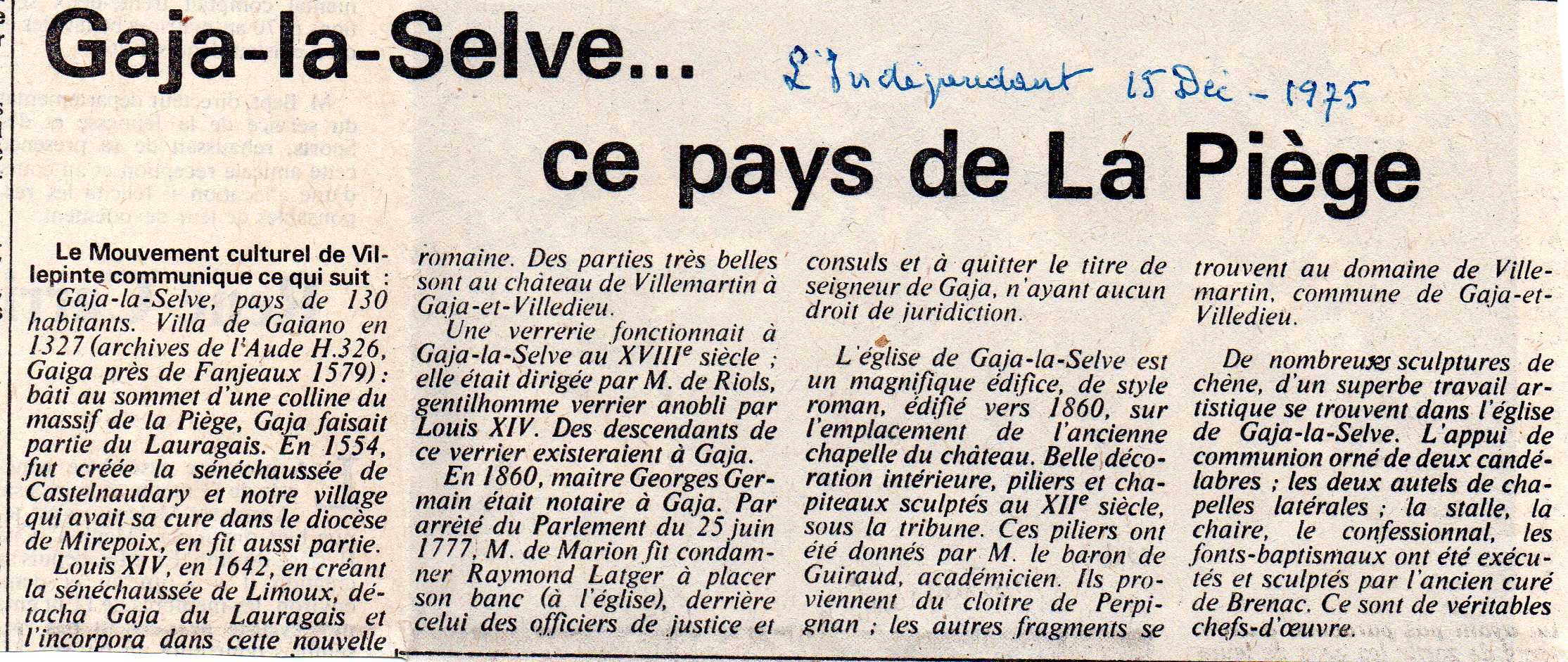 Accueil > Informations par lieu (communes, autres) > Communes dont le nom commence par G > Gaja-la-Selve