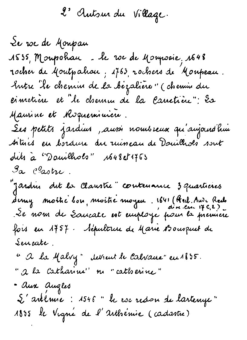 Quelques uns des noms cités : Monpau, La Clastre, La Madeleine, A Hugalière, Le Colombier.