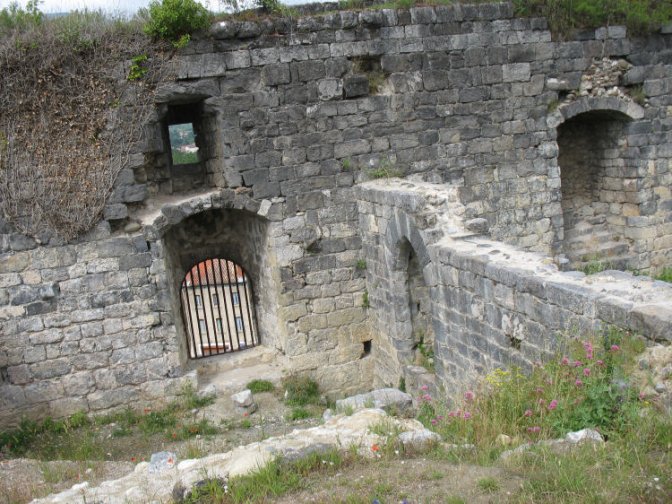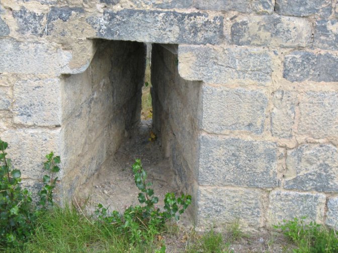 Un poterne au sud est flanquée à sa gauche d’un lieu d’aisance avec arc ogival.