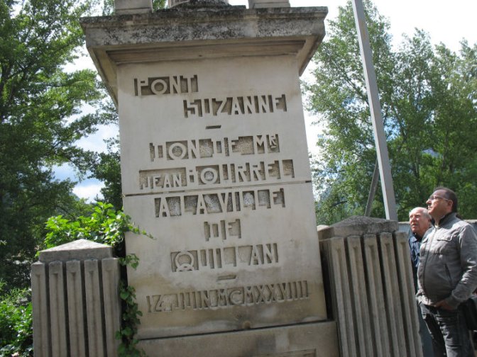 nous sommes arrivés au pont Suzanne ainsi baptisé, en présence du président de la République d’alors, Gaston Doumergue, en l’honneur de la fille de M. Bourrel, maire et surtout directeur des usines situées en ce lieu.