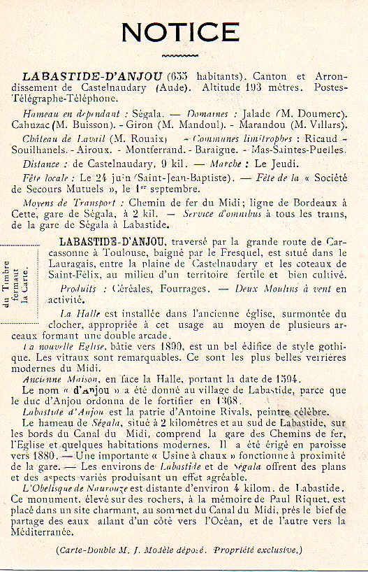 Accueil > Informations par lieu (communes, autres) > Communes dont le nom commence par L > Labastide-d’Anjou
