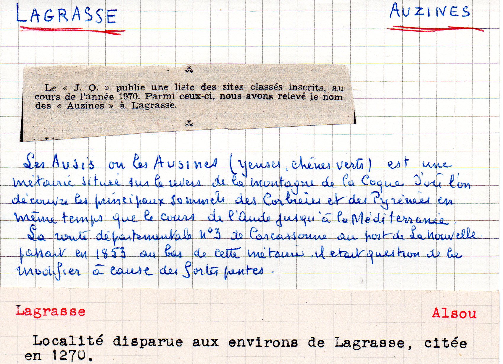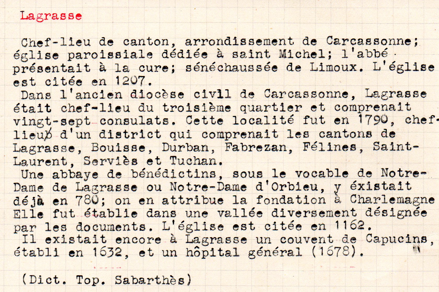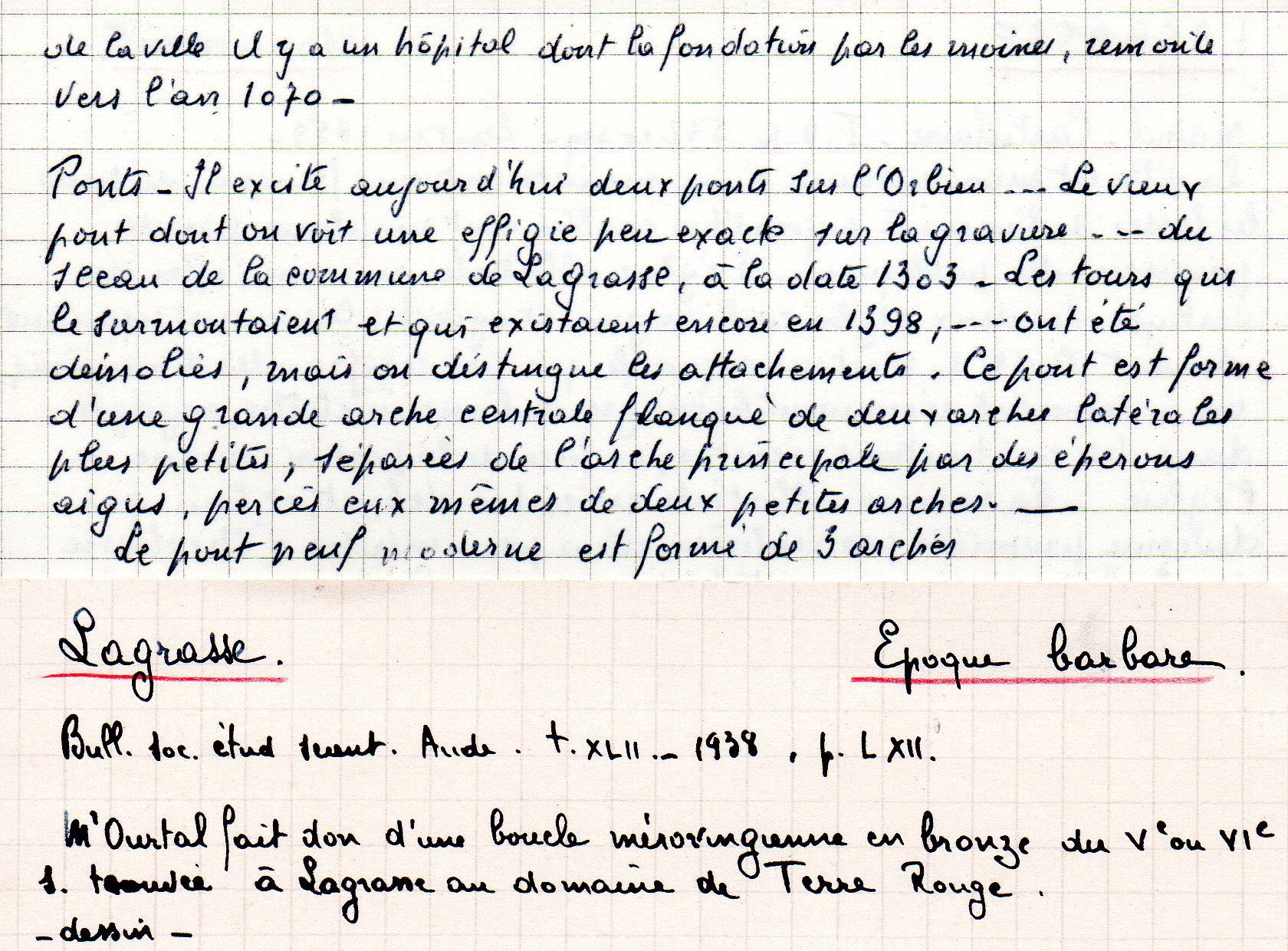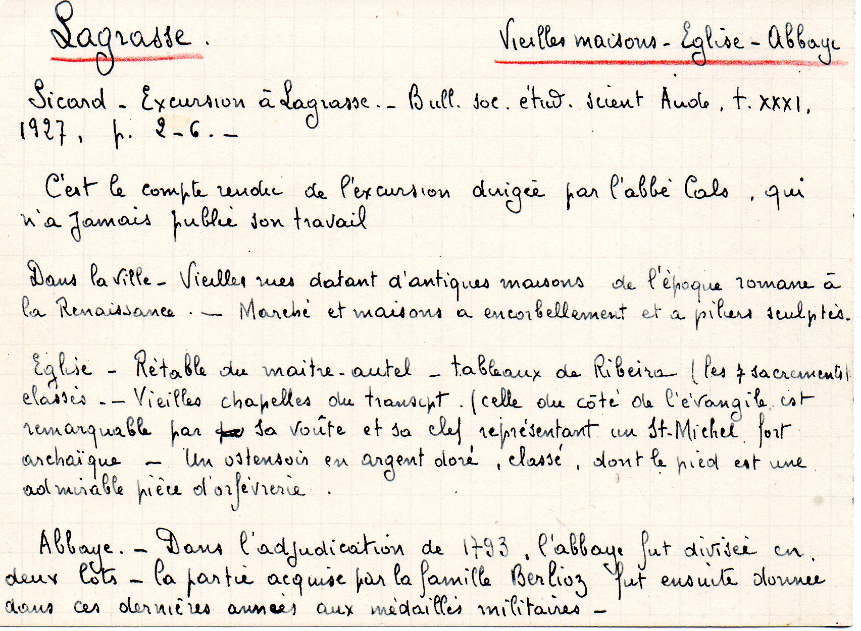 | Lagrasse | Sicard G. | Lagrasse | Excursion | 1927 | T. XXXI | p. 3 |