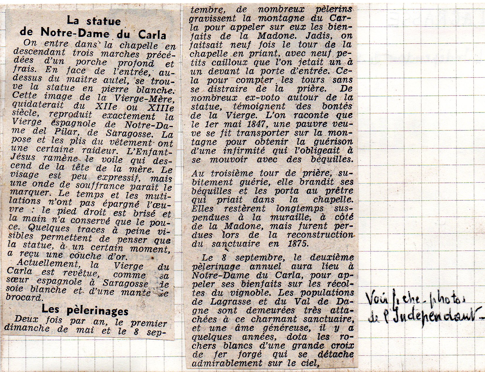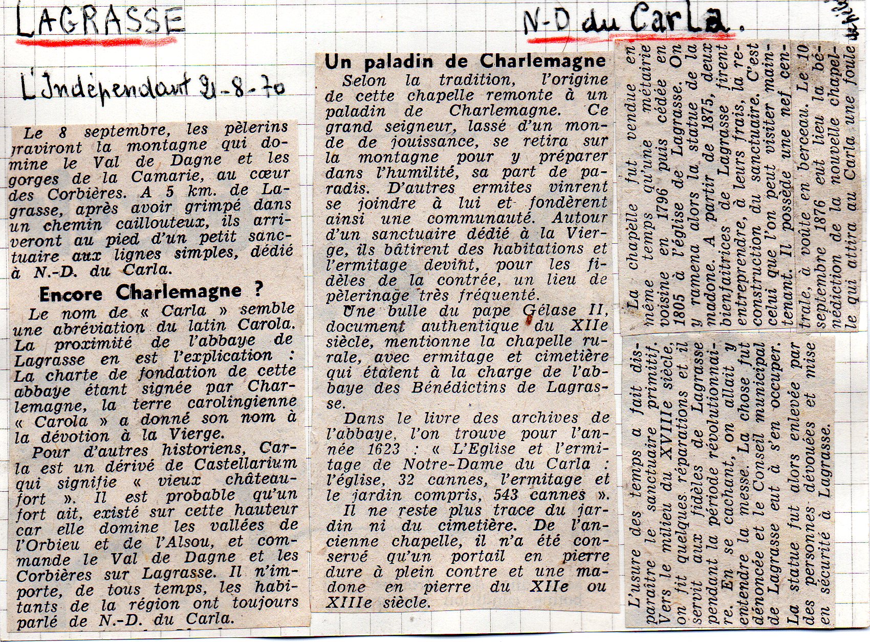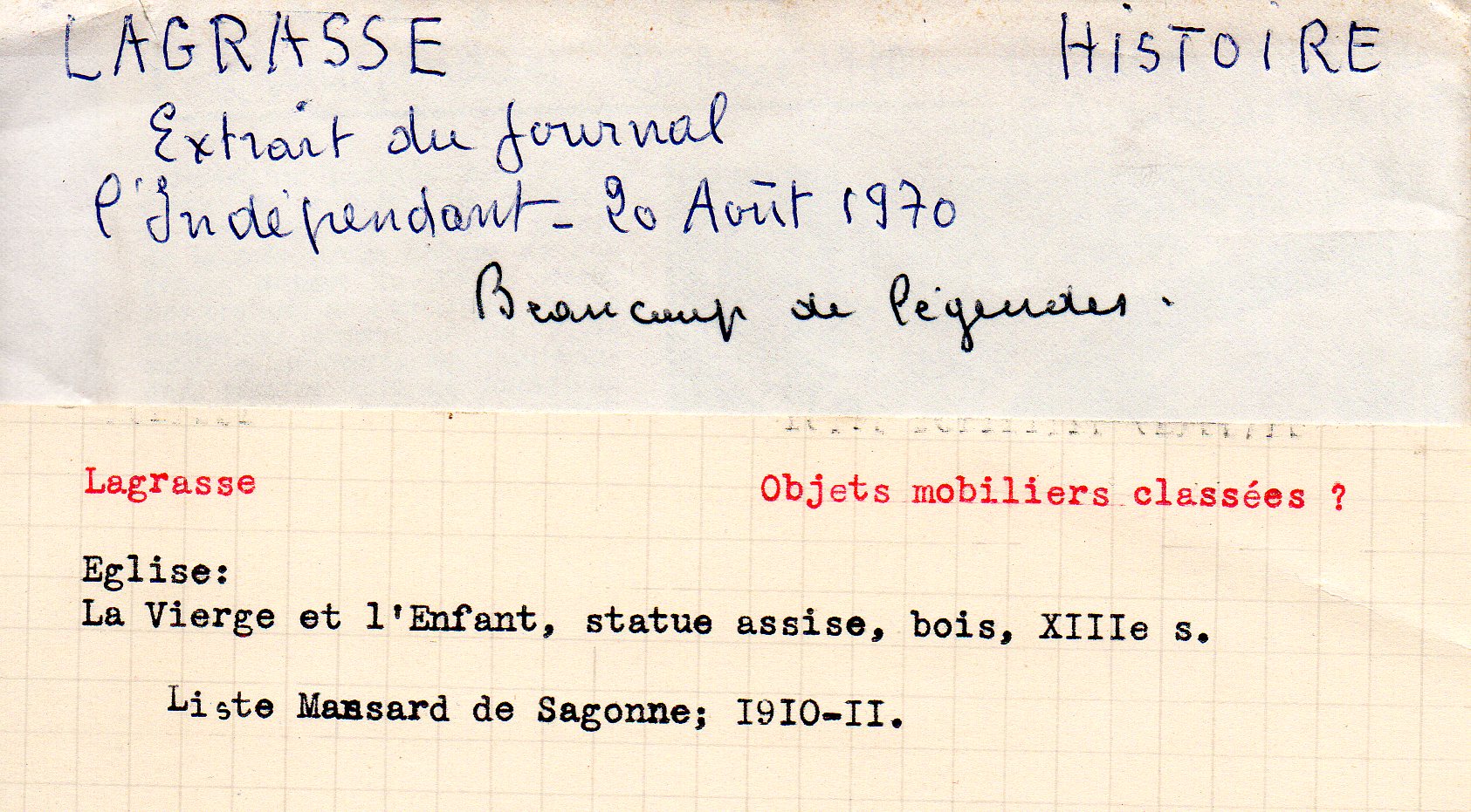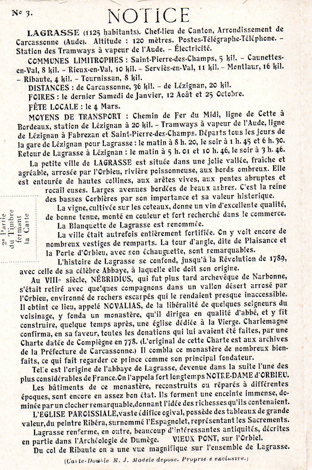 | Lagrasse | Sicard G. | Lagrasse | Excursion | 1927 | T. XXXI | p. 3 |