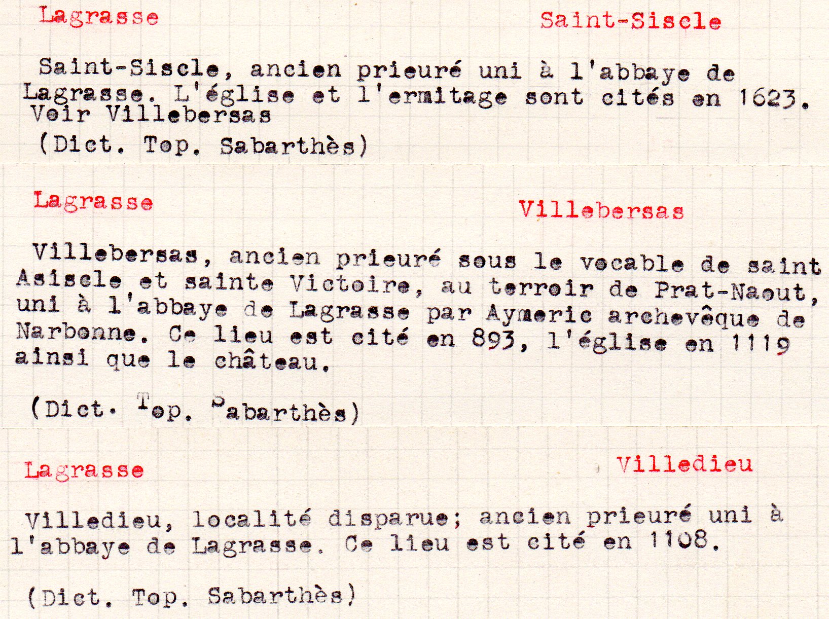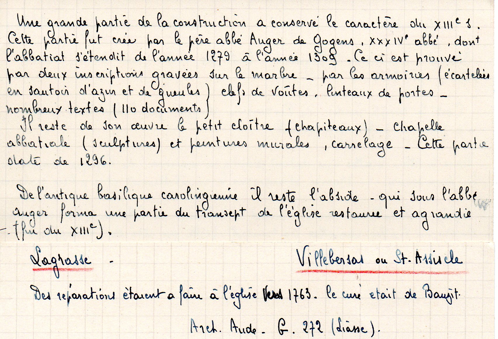 | Abbaye de Lagrasse | Degrave | Lagrasse | Moyen Age religion | 1907 | T. XVIII | p. 91 |