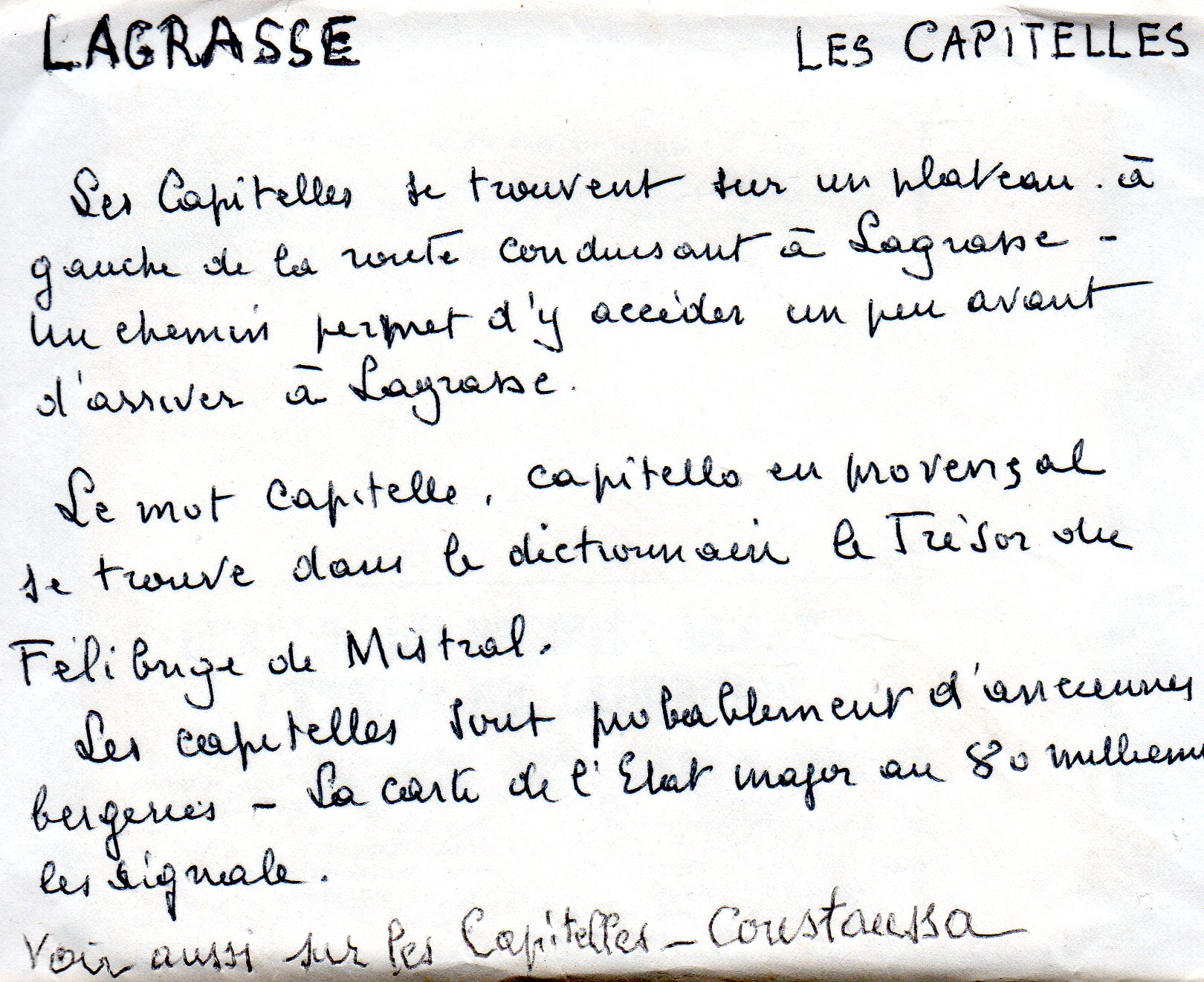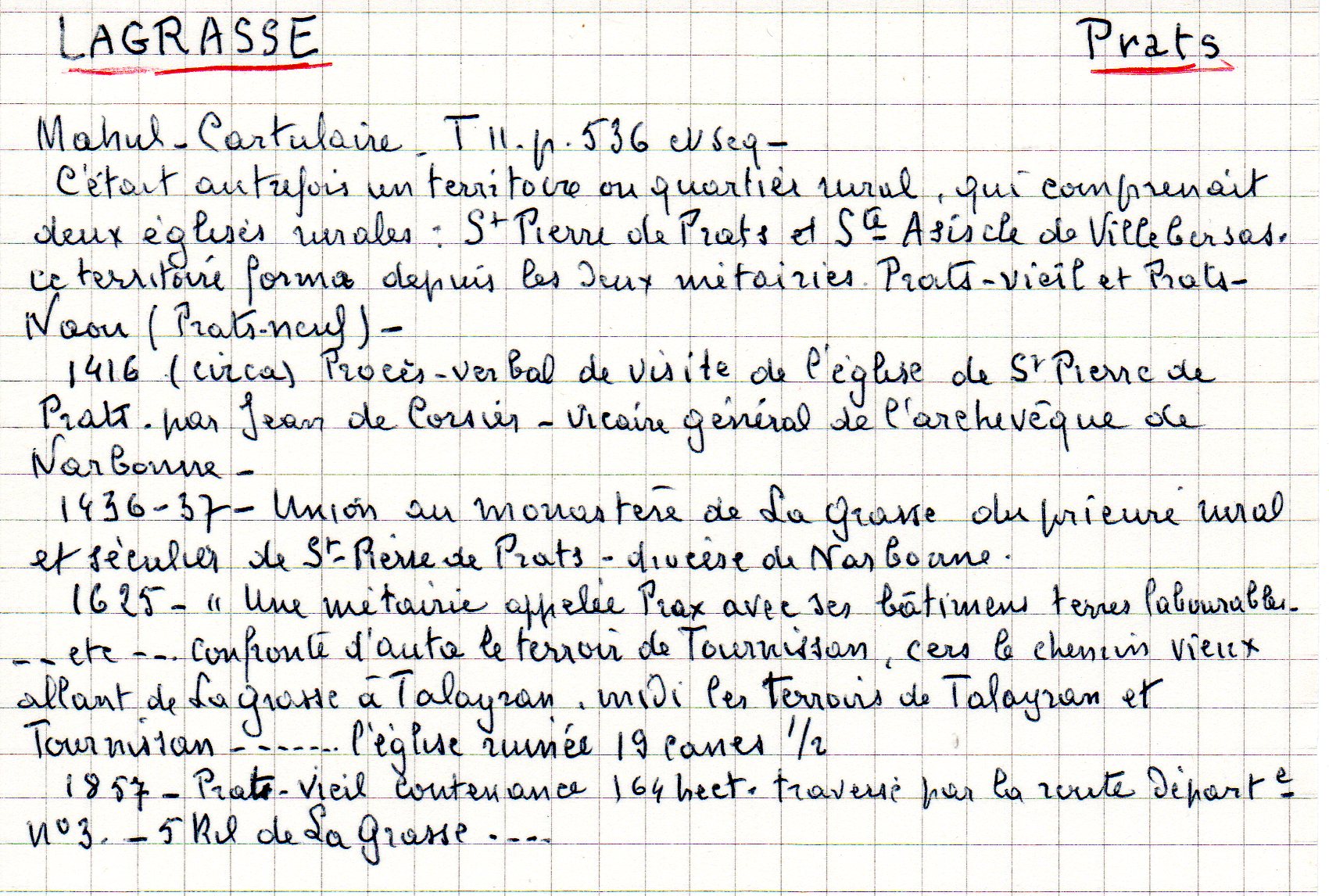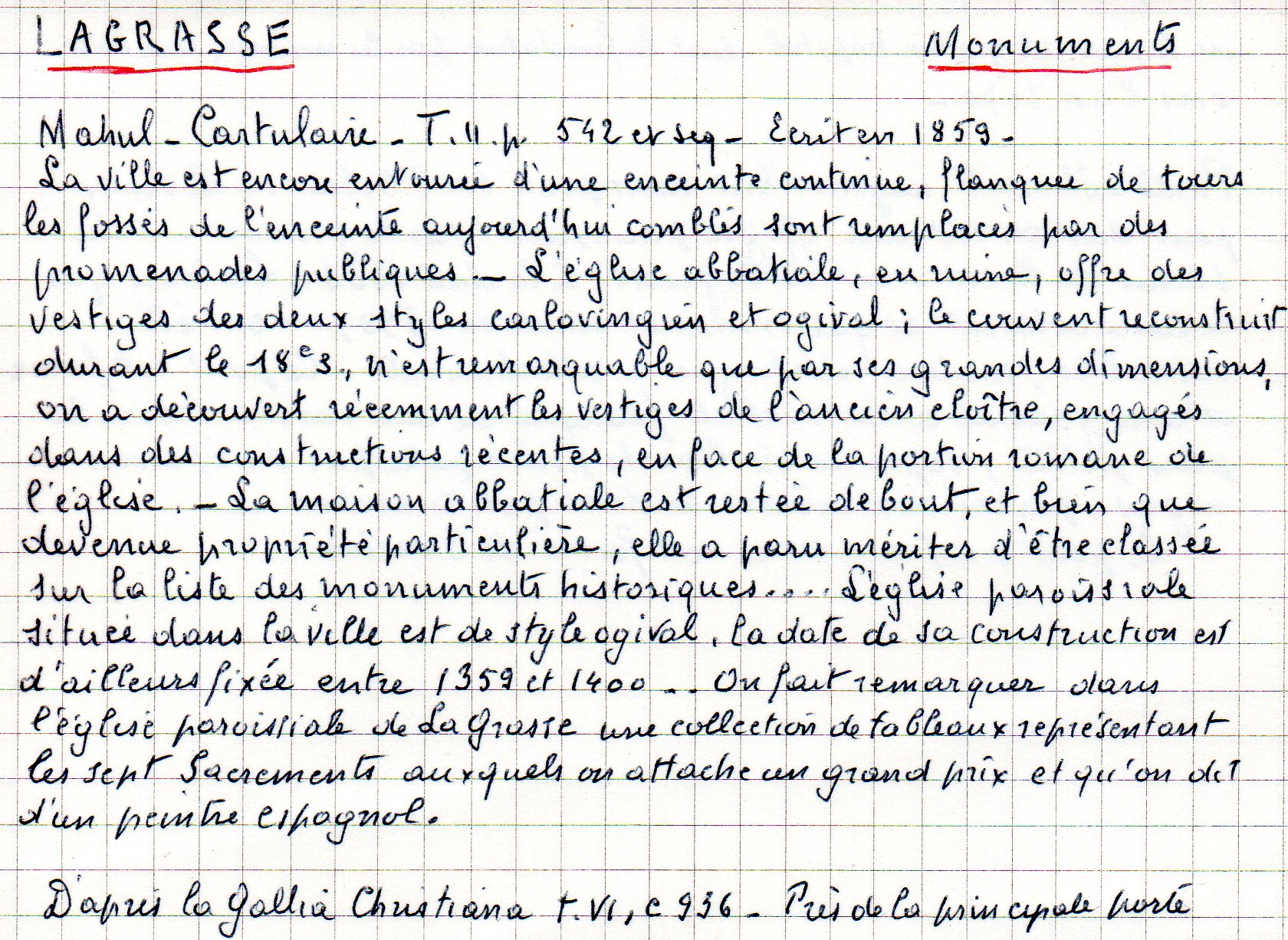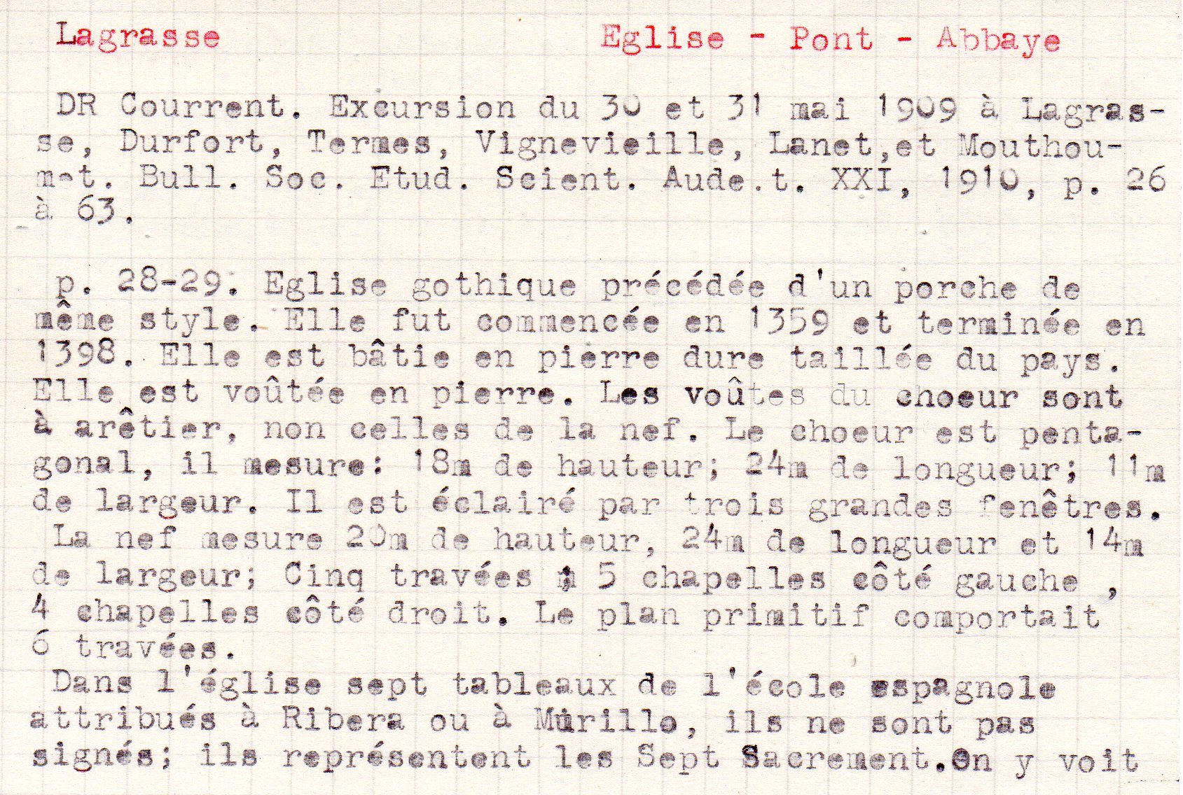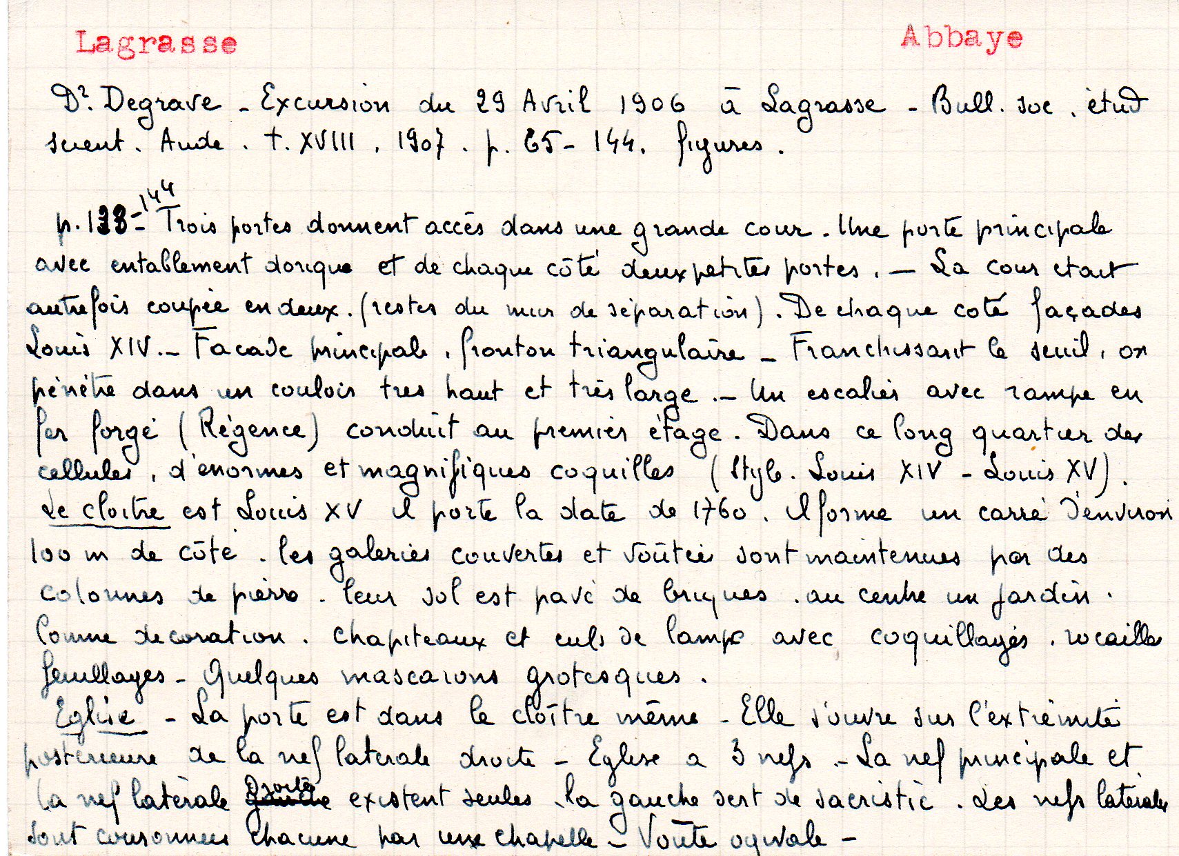 | Lagrasse (Excursion) | Degrave | Lagrasse | Excursion | 1907 | T. XVIII | p. 65 |