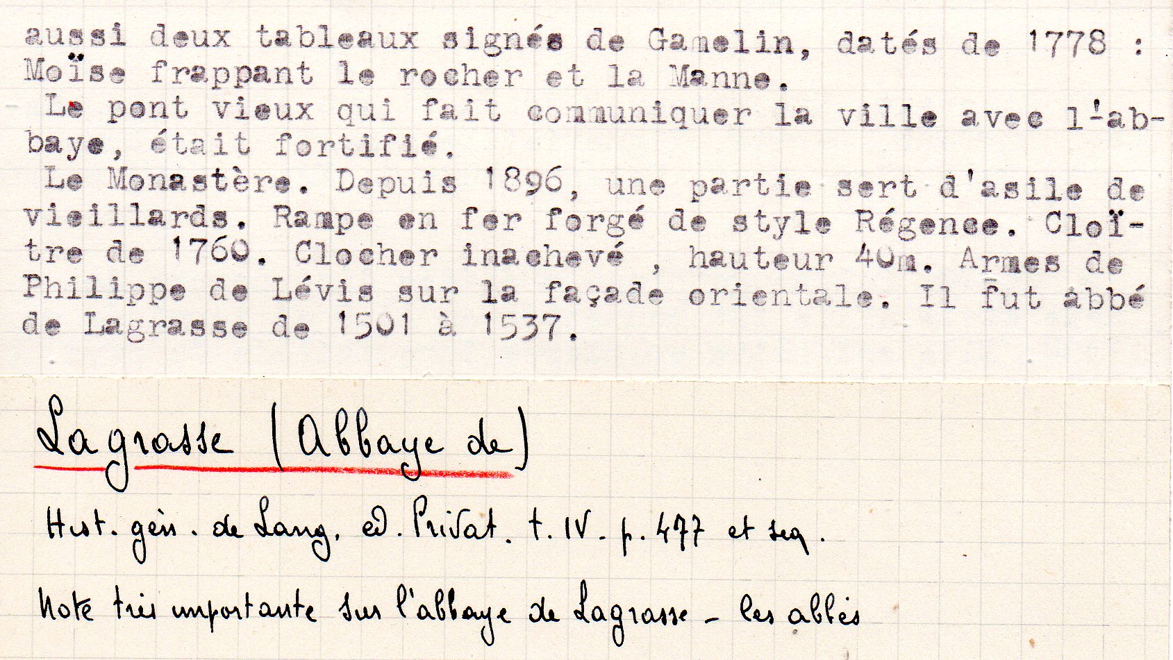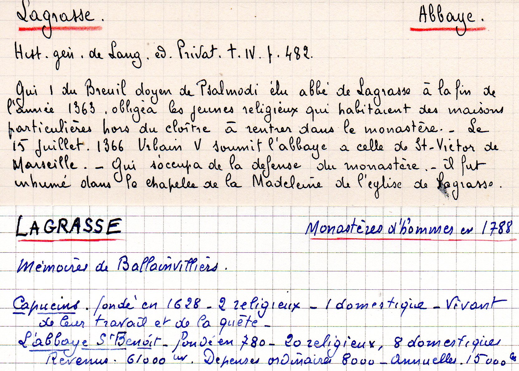 | Abbaye de Lagrasse. Une curieuse affaire au XIIIe siècle | Charles F. | Lagrasse | Histoire religieuse | 1976 | T. LXXVI | p. 40 |
