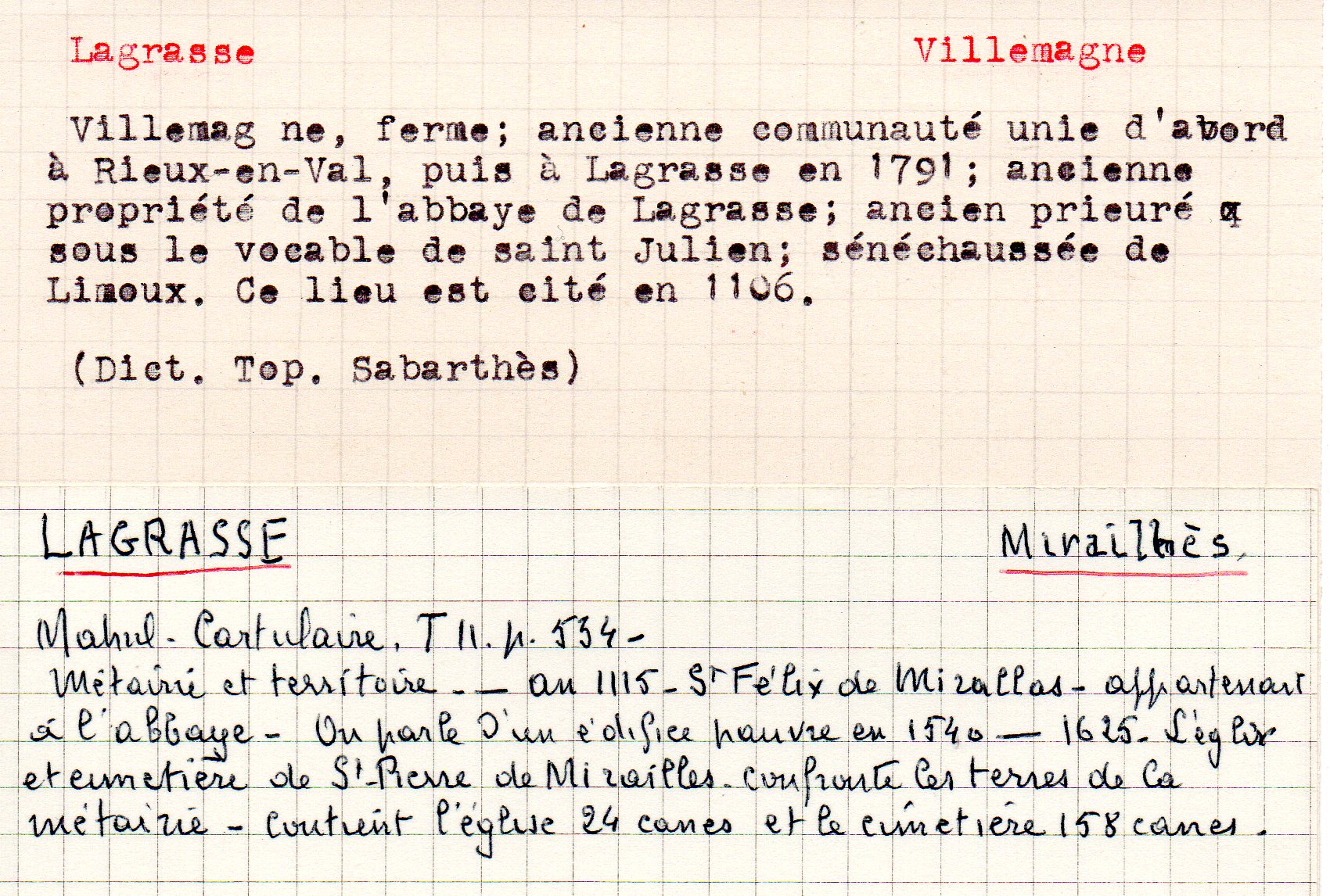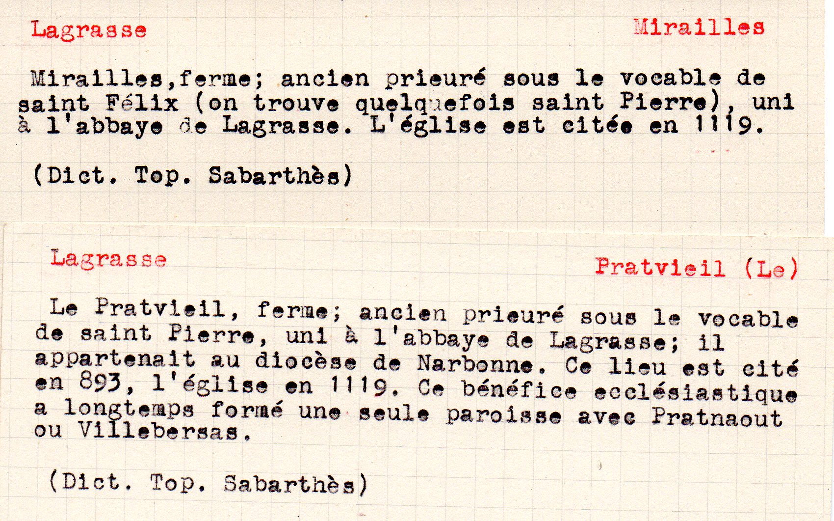 | Orbieu (Moulin) vente à l’abbaye de Lagrasse. | Cabirol P. | Lagrasse | 1929 | T. XXXIII | p.XLVIII | |