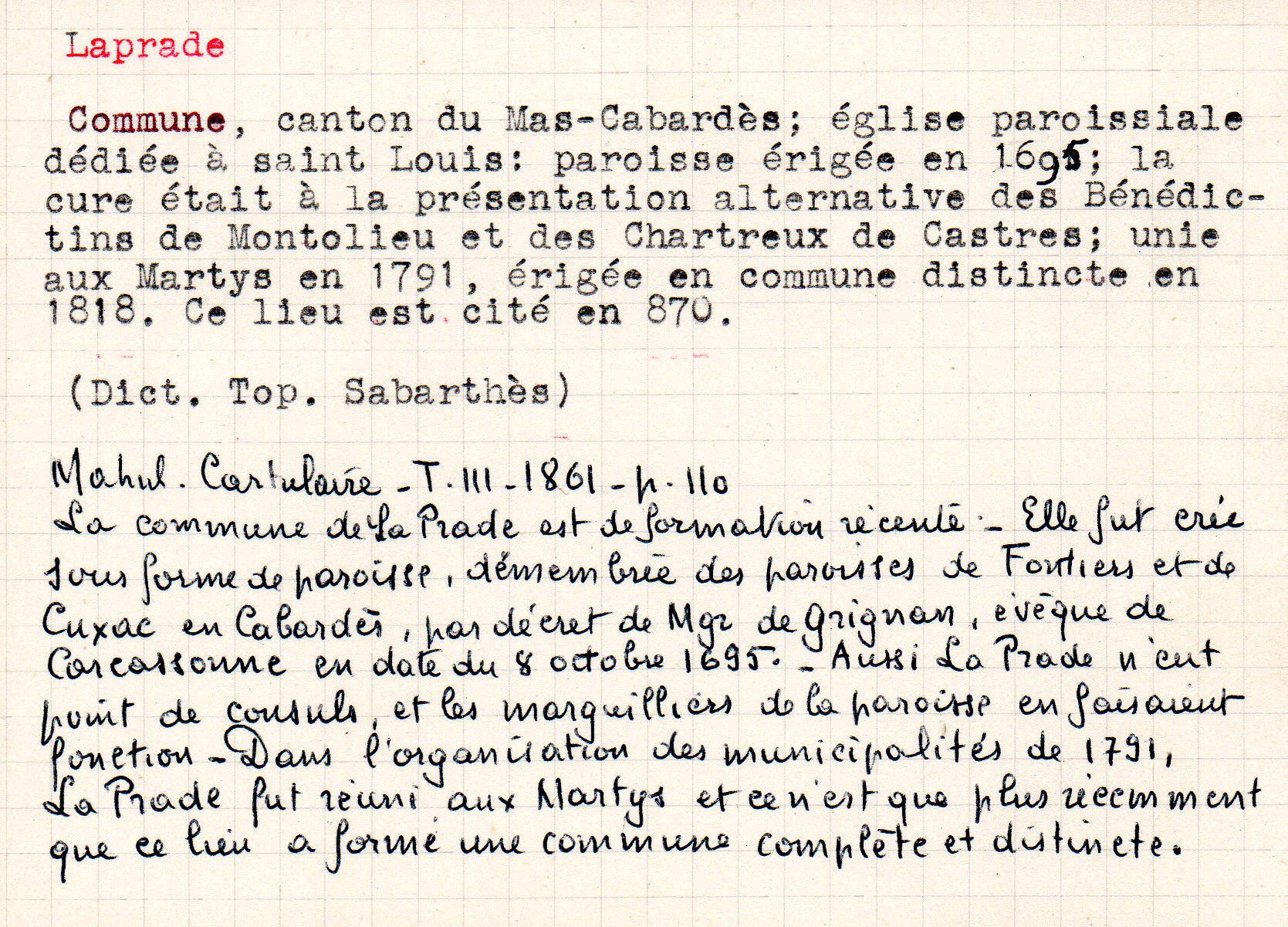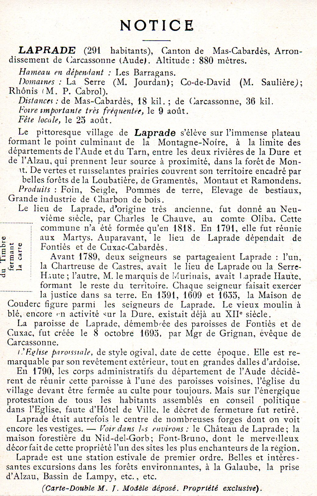 Accueil > Informations par lieu (communes, autres) > Communes dont le nom commence par L > Laprade