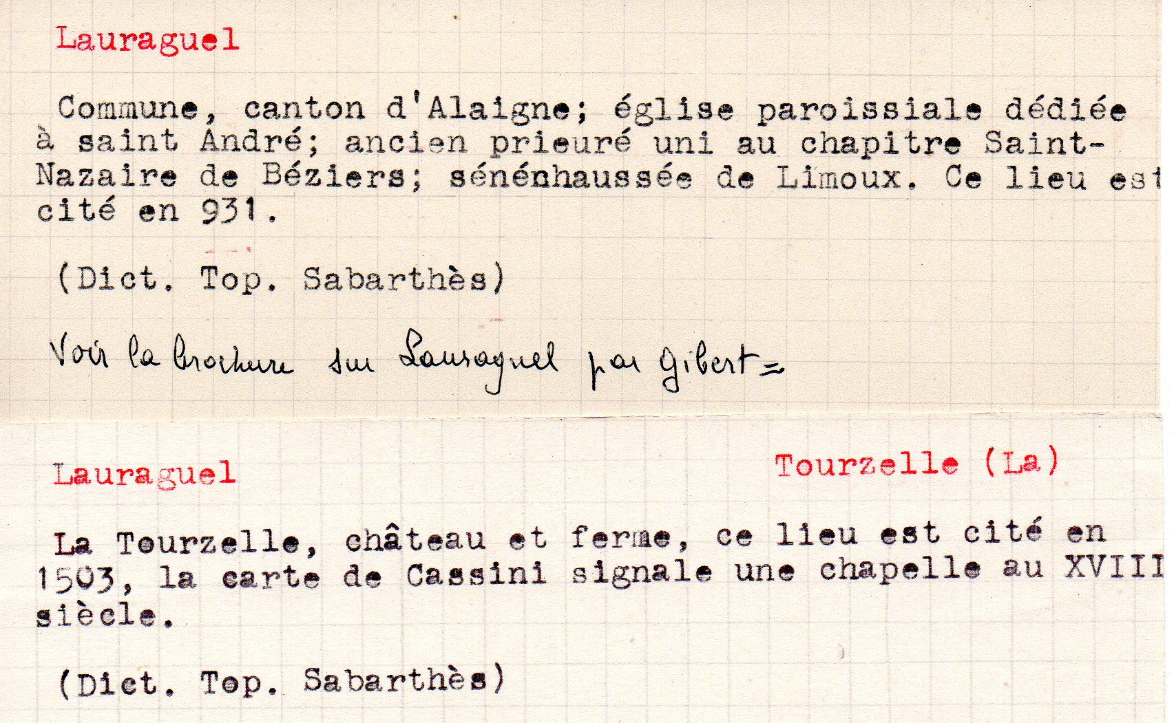 | Les registres paroissiaux de la communauté de Lauraguel | Gibert U. | Lauraguel | Histoire | 1969 | T. LXIX | p. 209 |