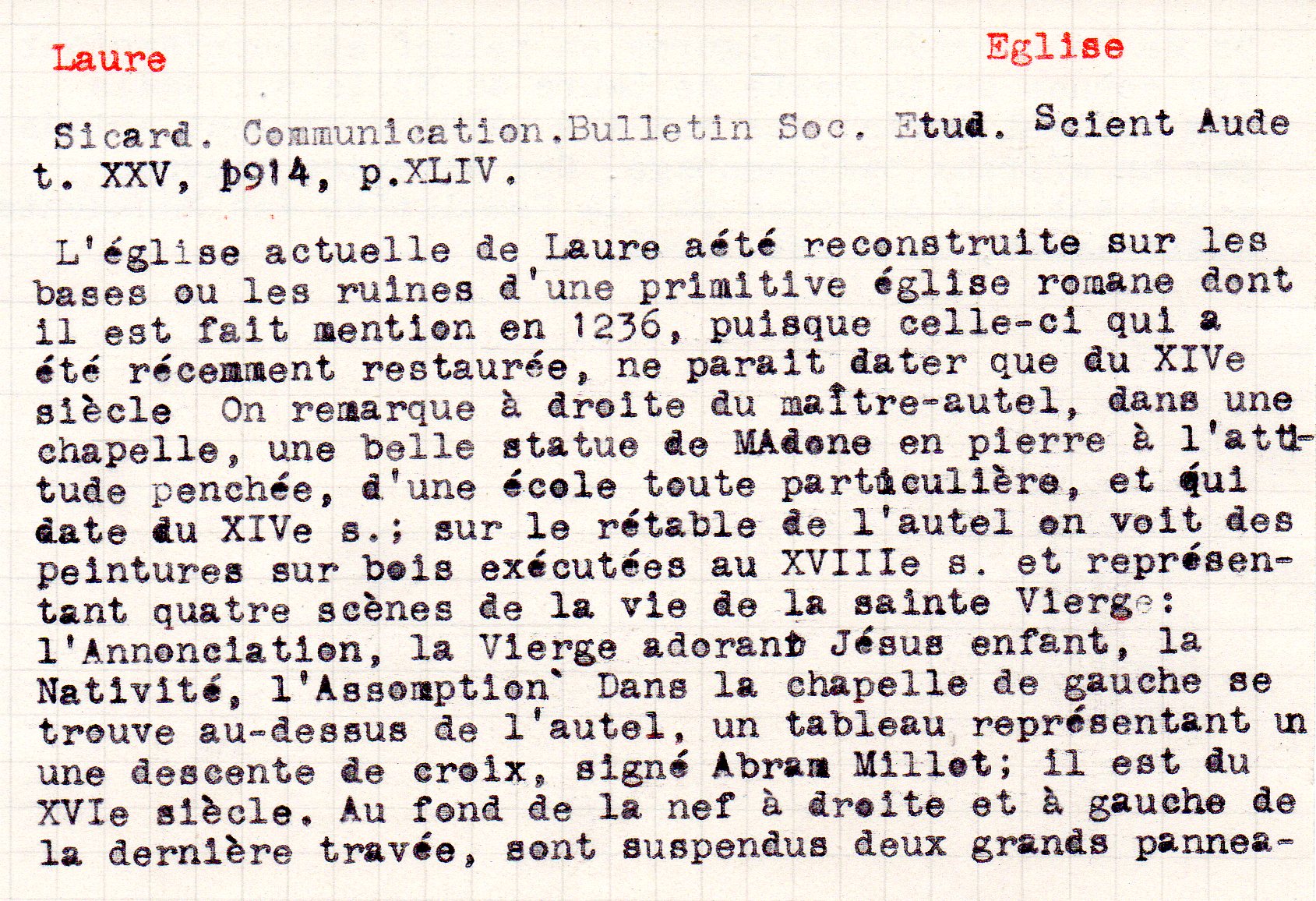 | Registres de catholicité de Laure | Journet Cl. | Laure-Minervois | Histoire église | 1960 | T. LXI | p. 22 |