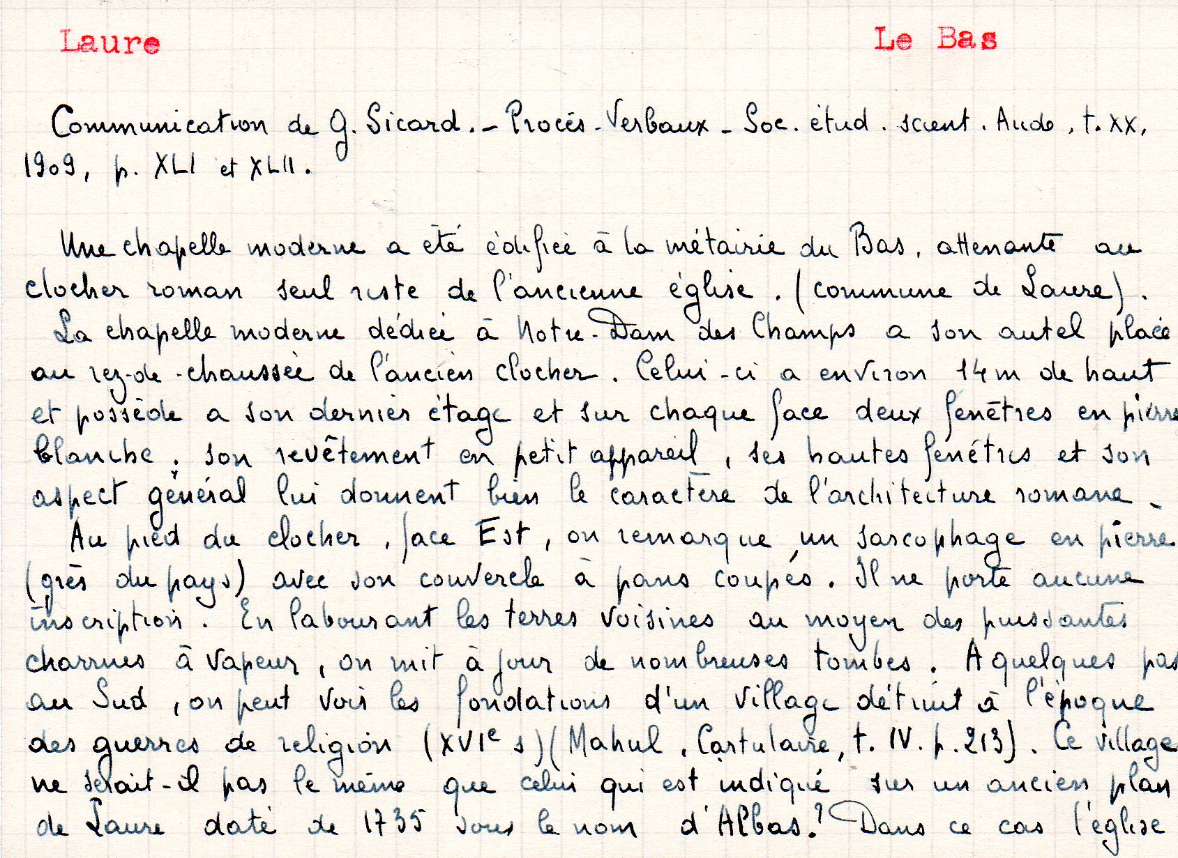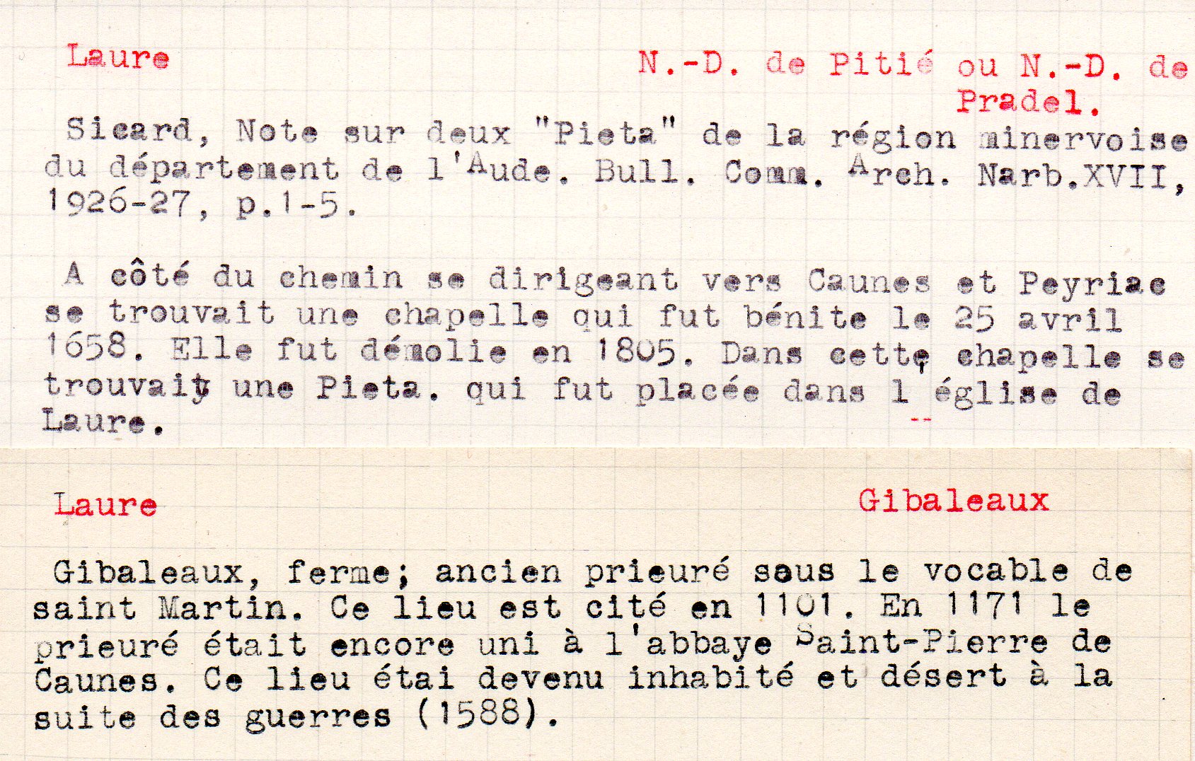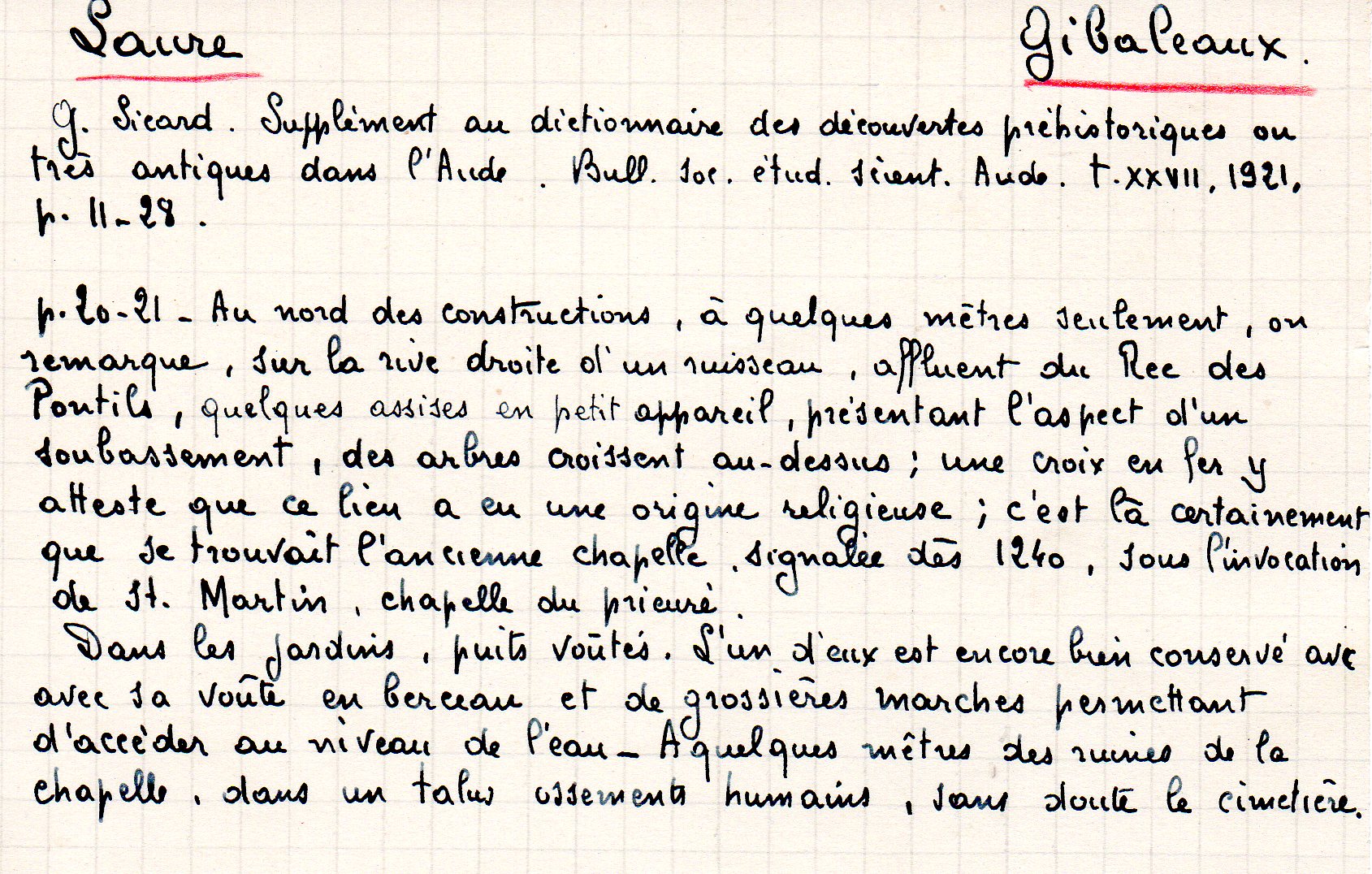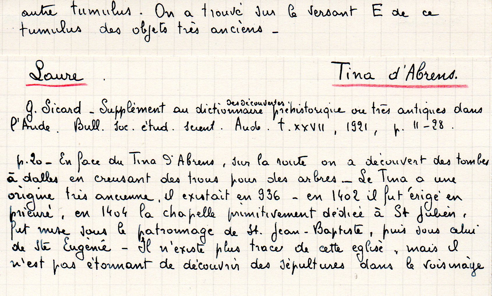 | Saint-Eugène (Laure-Minervois) | Sicard G. | Laure-Minervois | Préhistoire | 1930 | T. XXXIV | p. LXXVI et 195 |