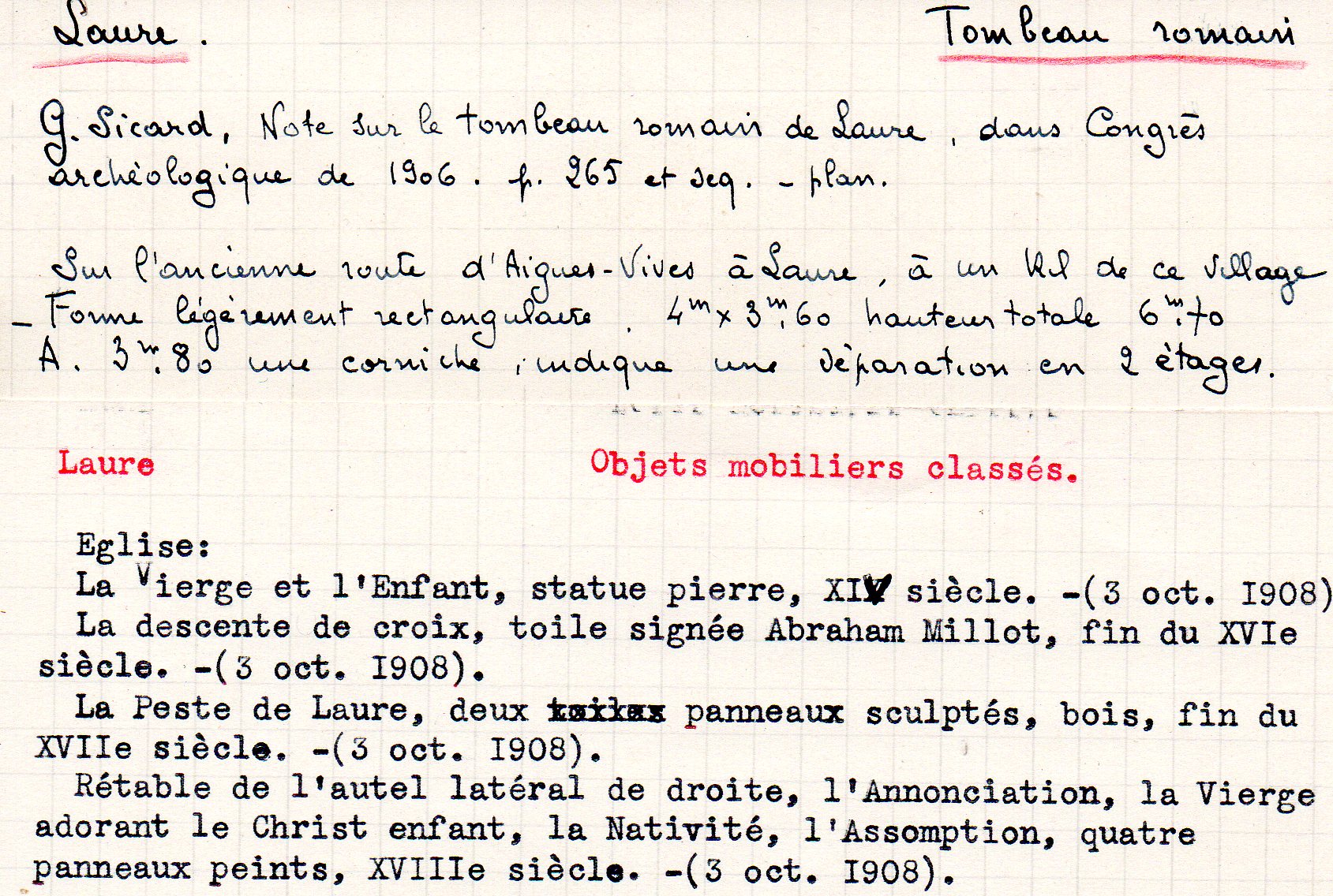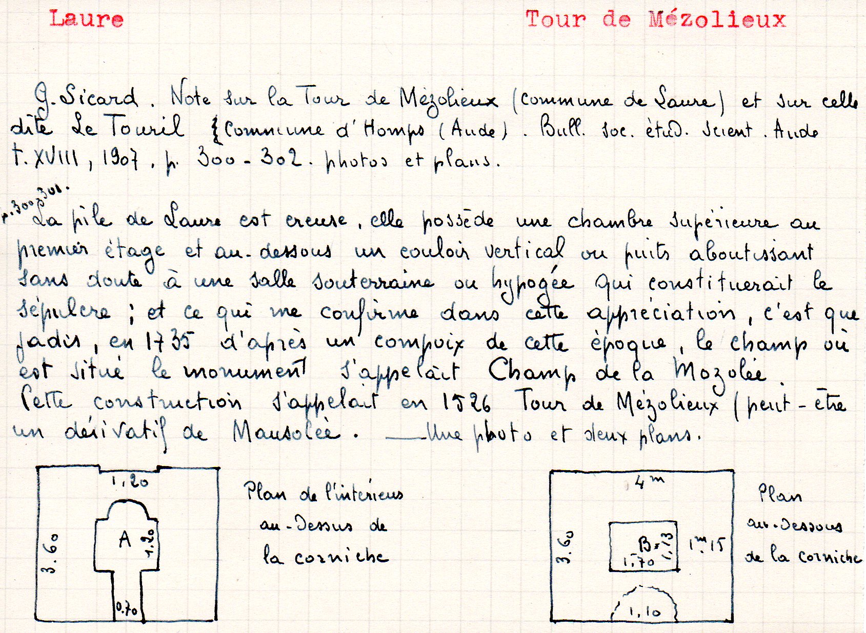 | Mausolée de Laure-Minervois - Gourgouly | Journet Cl. | Laure-Minervois | Archéologie | 1971 | T. LXXI | p. 19, 25, 28, 30 |