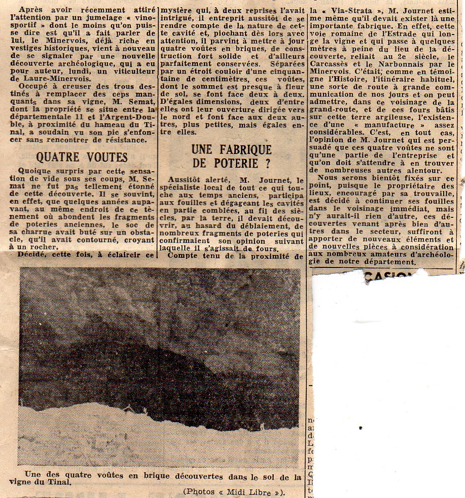 | Le four de potier d’Abrens | Journet Cl. | Laure-Minervois | Archéologie | 1959 | T. LX | p ; 53 |