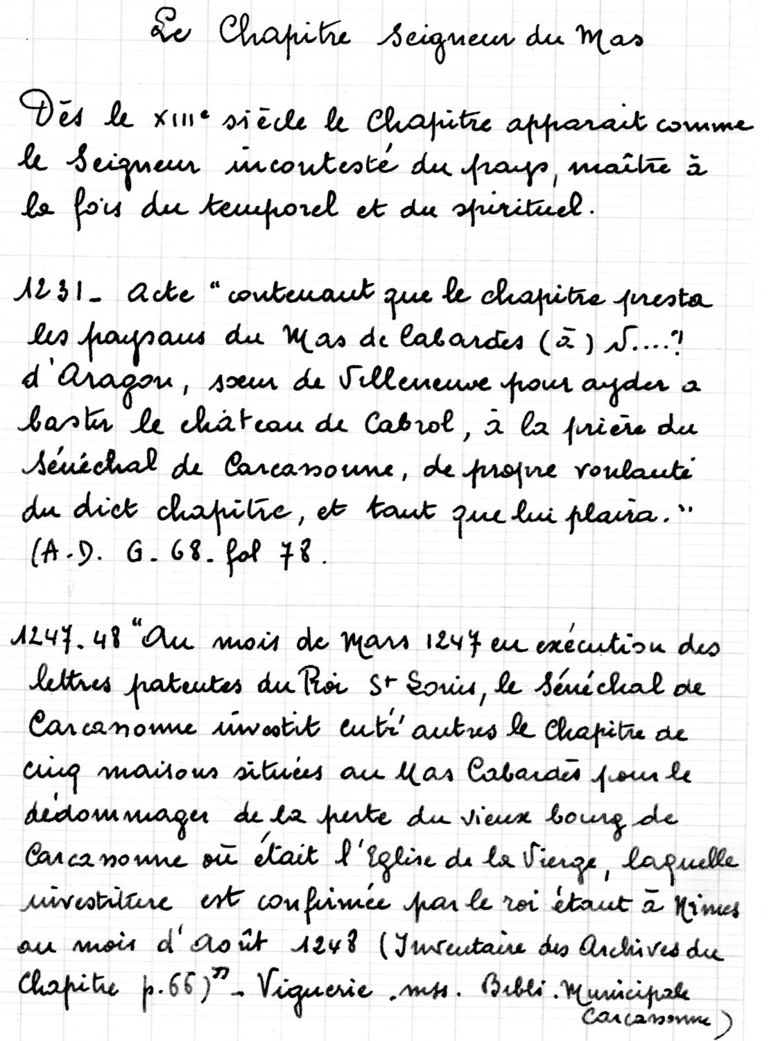 Accueil > La bibliothèque > Documents de la bibliothèque numérisés accessibles sur ce site > L’histoire du Mas-Cabardès de Costeplane J. et P. > Le chapitre seigneur du Mas
