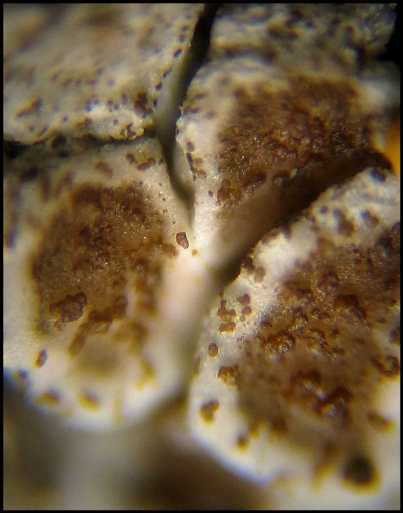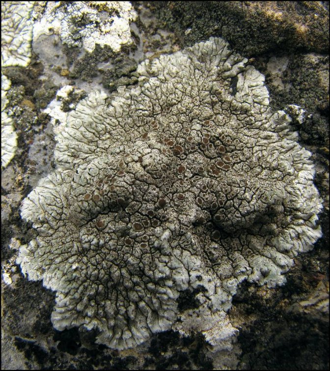Les apothécies sont parfois nombreuses et agglomérées au centre du thalle.