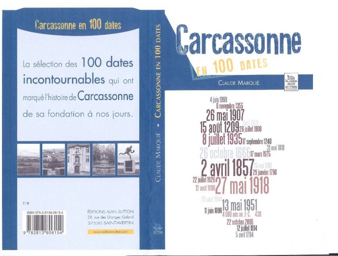 Le livre de Claude Marquié intitulé « Carcassonne en 100 dates » s‘efforce de combler ces lacunes à l’aide de textes courts illustrés de photographies. Les exemples ci-dessus montrent qu’il ne s’agit pas de repères uniquement politiques, mais d’évènements concernant la vie économique et sociale (l’industrie textile, le rôle du chemin d fer), la religion (le collège des Jésuites), les arts (J. Gamelin, les hôtels de la Bastide, Paul Lacombe), les sciences (Paul Sabatier), les lettres (Joé Bousquet, René Nelli) …