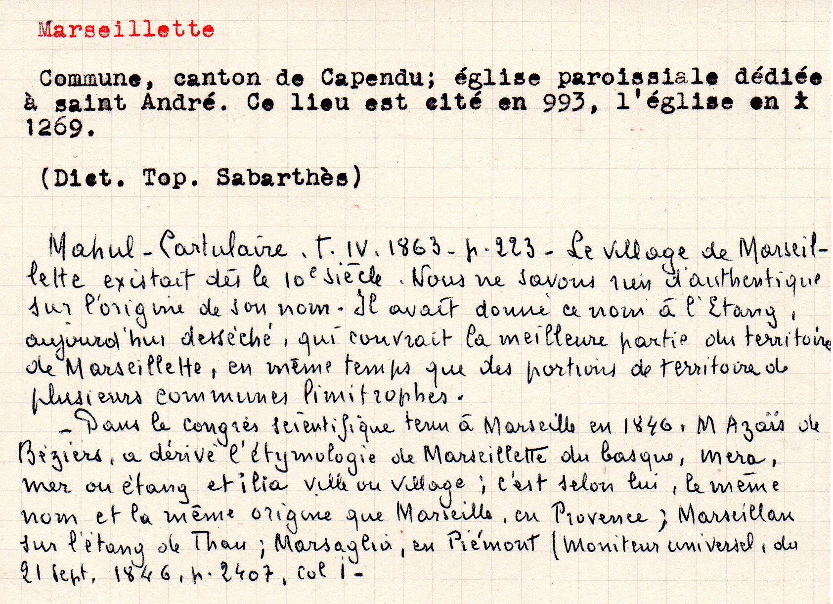 | Etang de Marseillette (Excursion) | Petit A., Baichère E. | Marseillette | Excursion | 1890 | T. I | p. 23 |