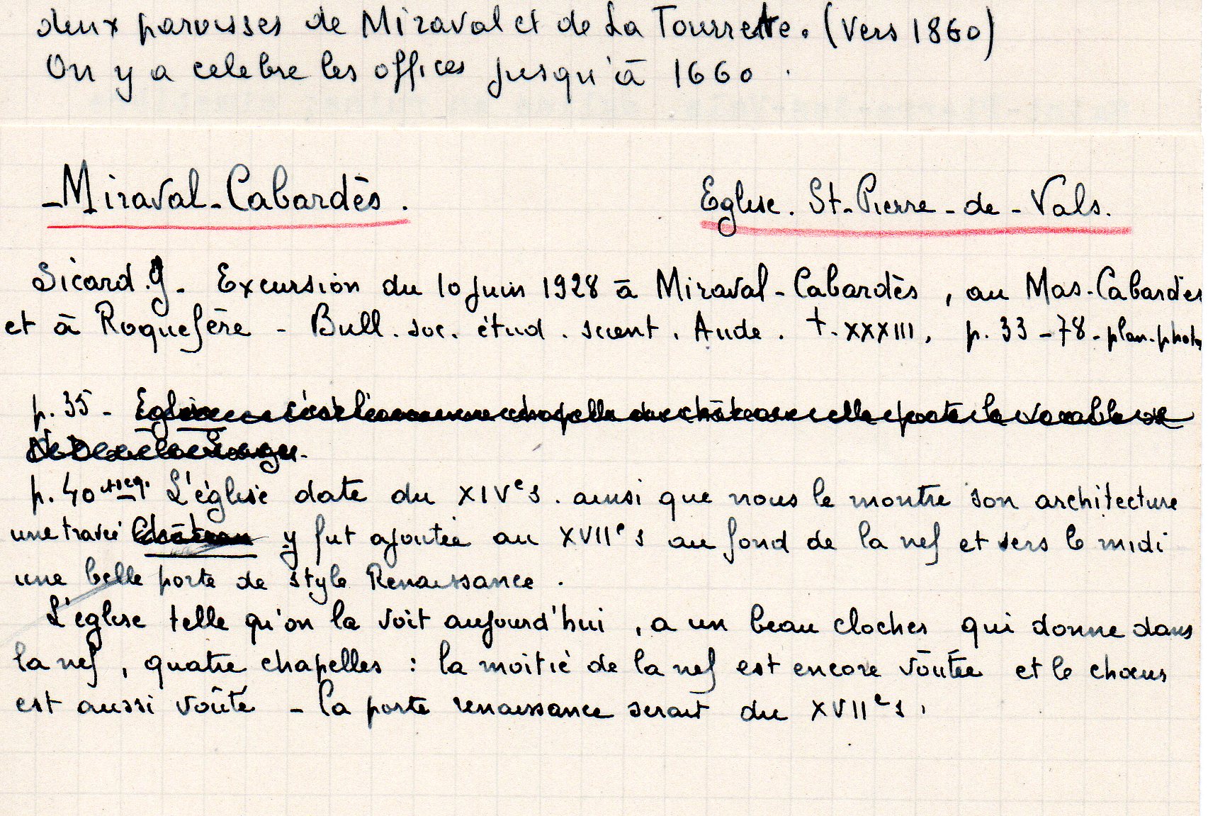 | Eglise de Saint-Pierre-de-Vals | Hyvert R. | Miraval-Cabardès | Architecture religieuse | 1960 | T. LXI | p. 22 |