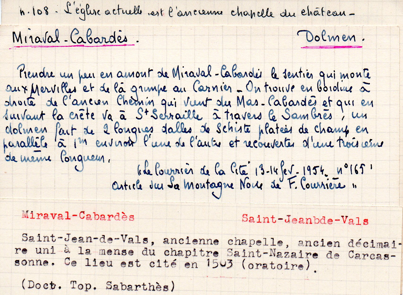 | Excursion | Sicard G. Sicard J. | Miraval, Mas-Cabardès, Roquefère | Excursion | 1930 | T. XXXIV | p. 34 |
