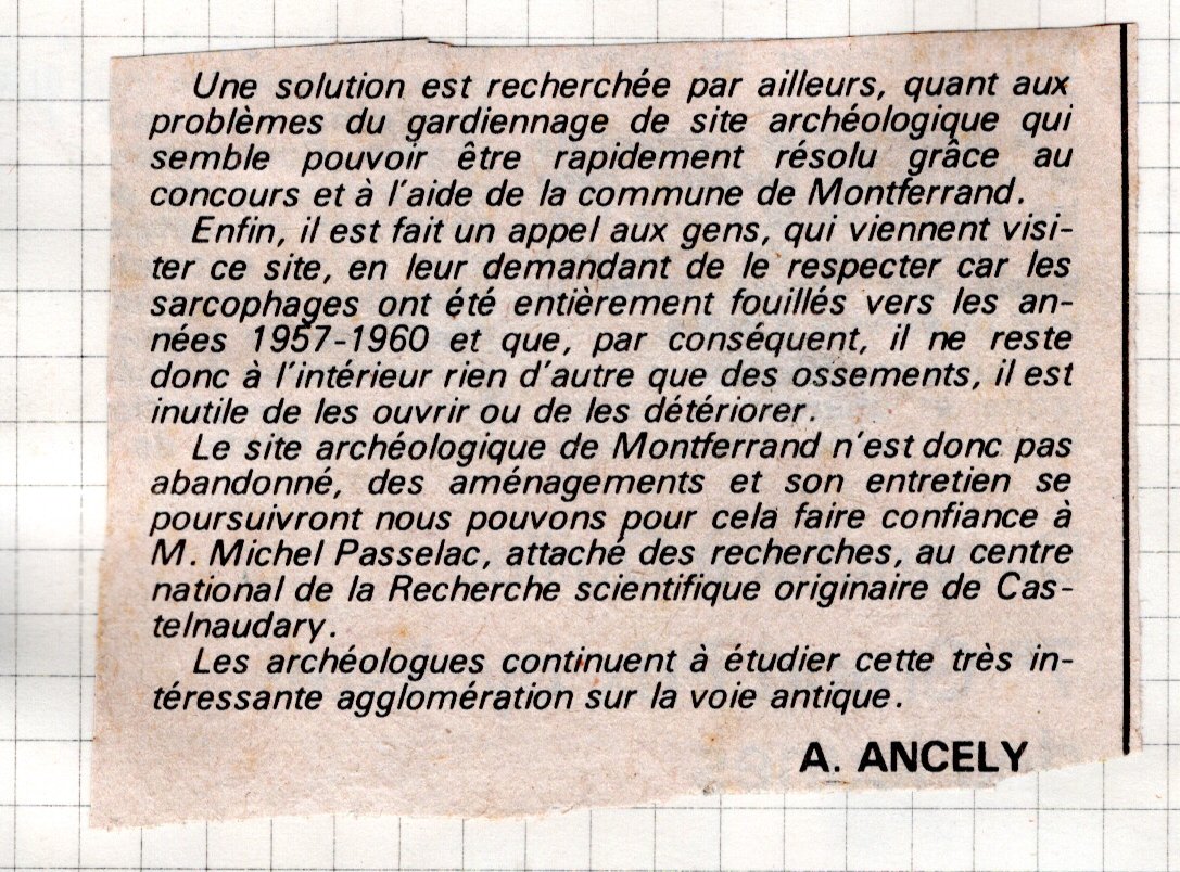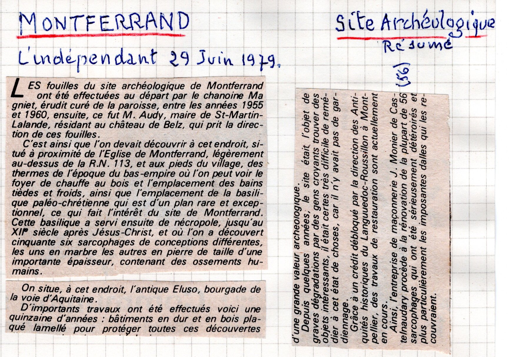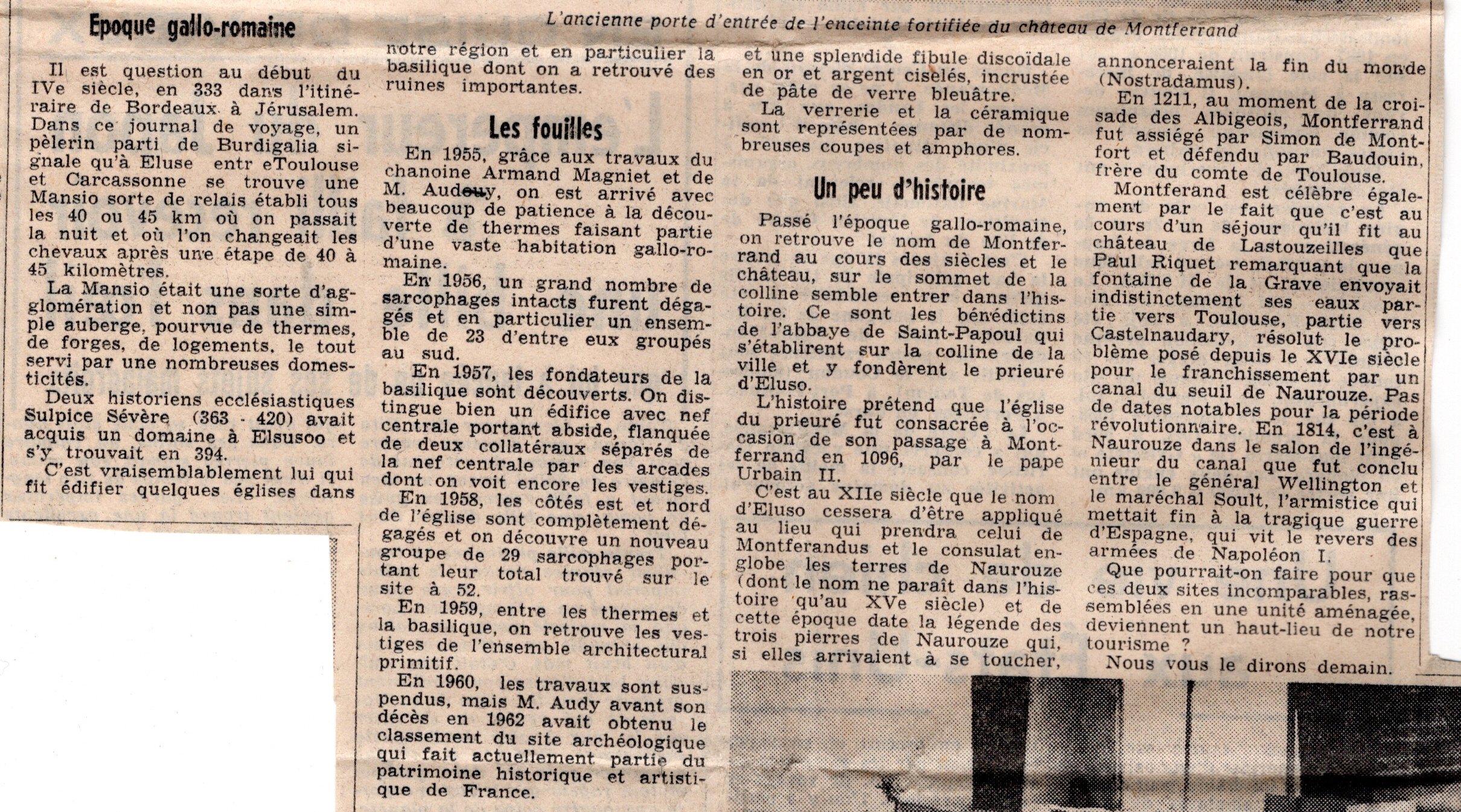 | Fouilles de Montferrand (Camapgne 1960) | Audy J. | Montferrand | Archéologie | 1961 | T. LXII | p. 111 |