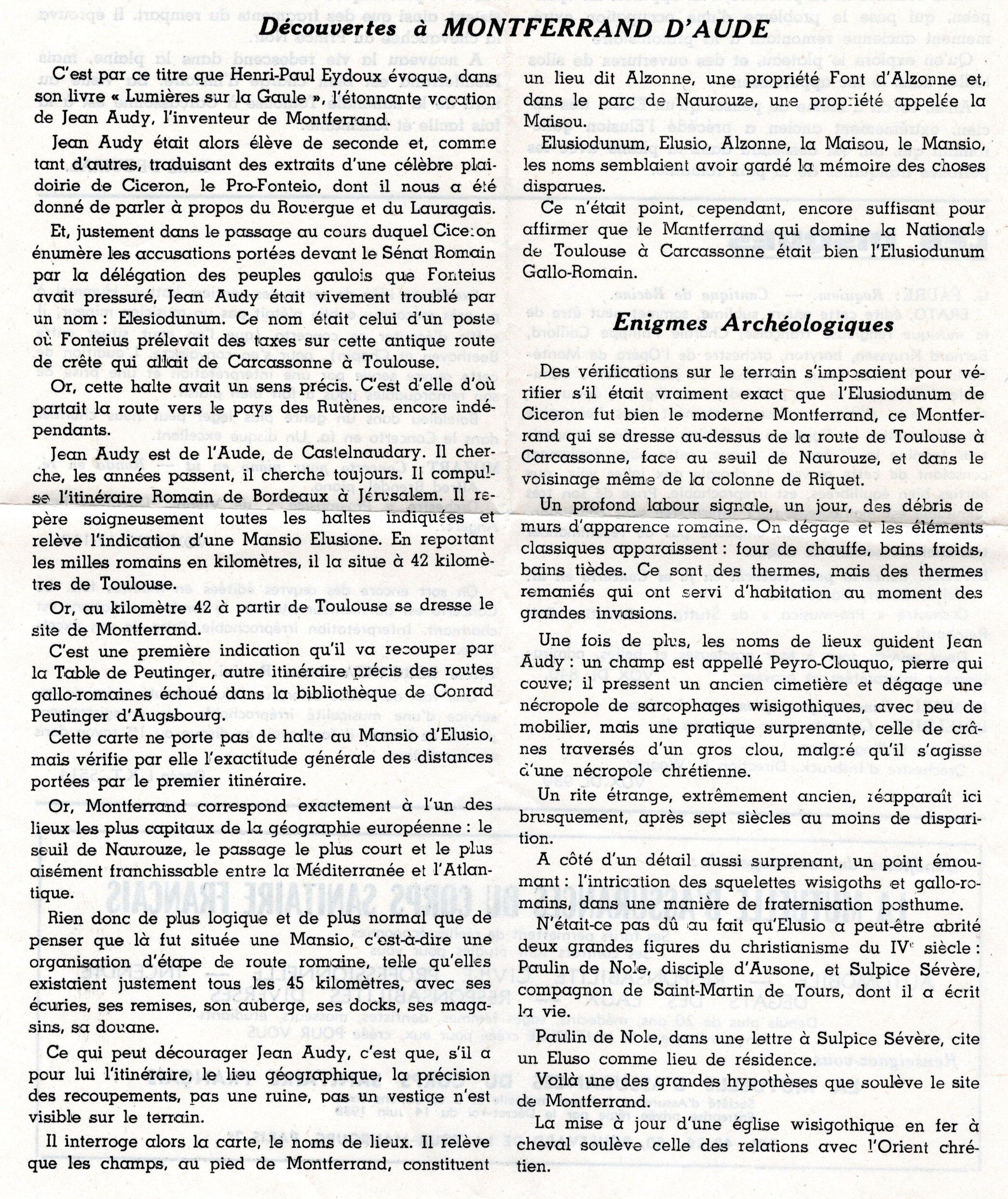 | Montferrand | Audy J. | Montferrand | Archéologie | 1957 | T. LVIII | p. 273 |