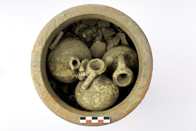 Aux portes de Narbonne, sur les berges de la Robine, la nécropole antique fouillée par l’Inrap a livré des vestiges funéraires exceptionnels (structures de combustion, dépôts de crémation, restes osseux...), tant par leur nombre (près de 500 tombes) que par leur état de conservation. L’étude des vases ossuaires ouvre dores et déjà des perspectives importantes pour la connaissance de la population regroupée dans ce quartier de la nécropole et pour l’étude des pratiques funéraires en Gaule romaine.