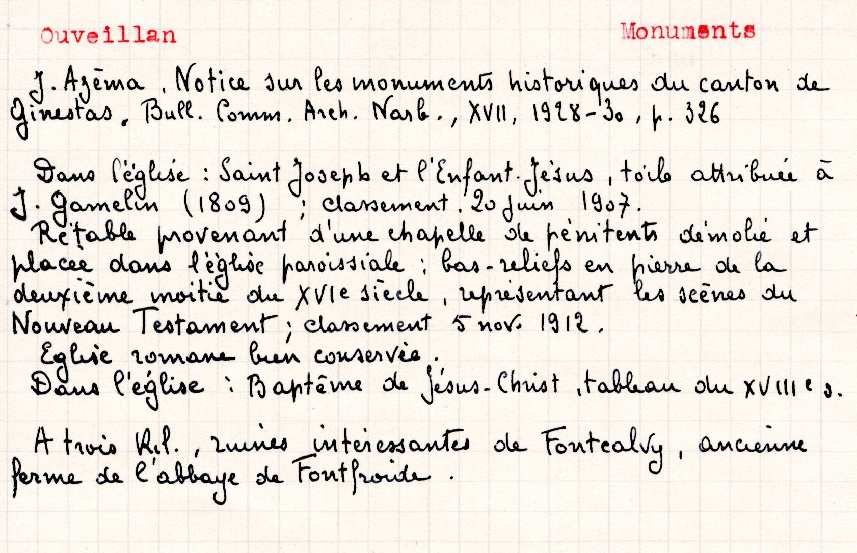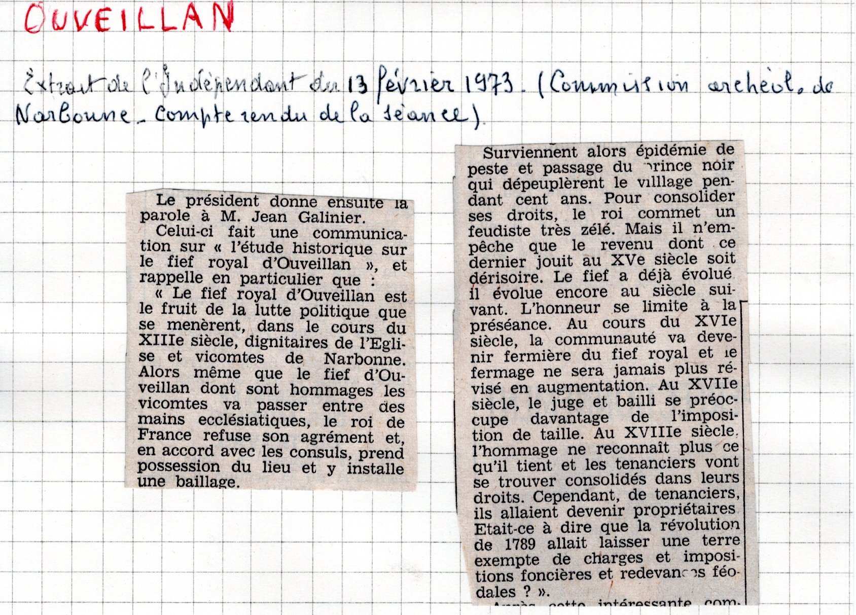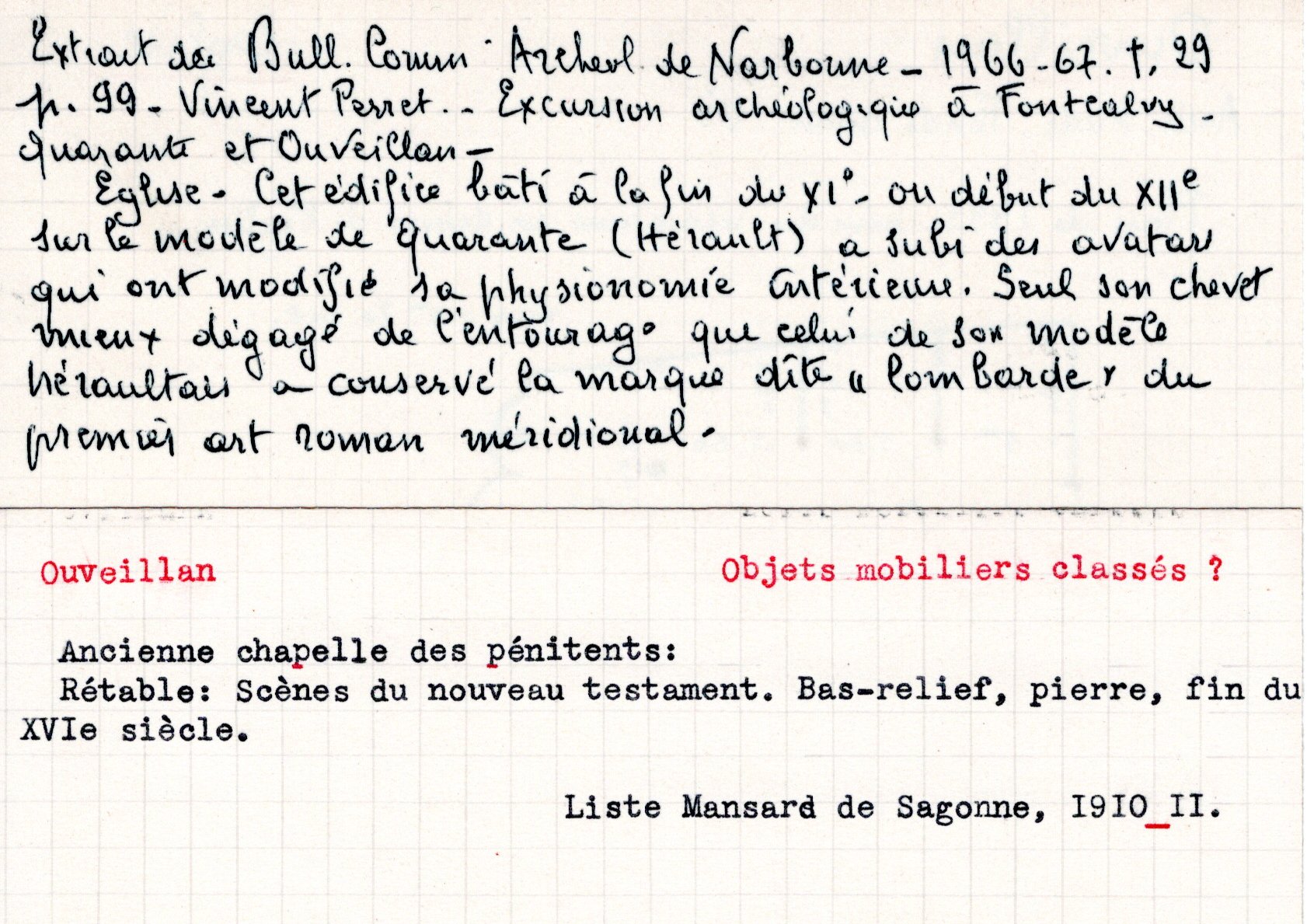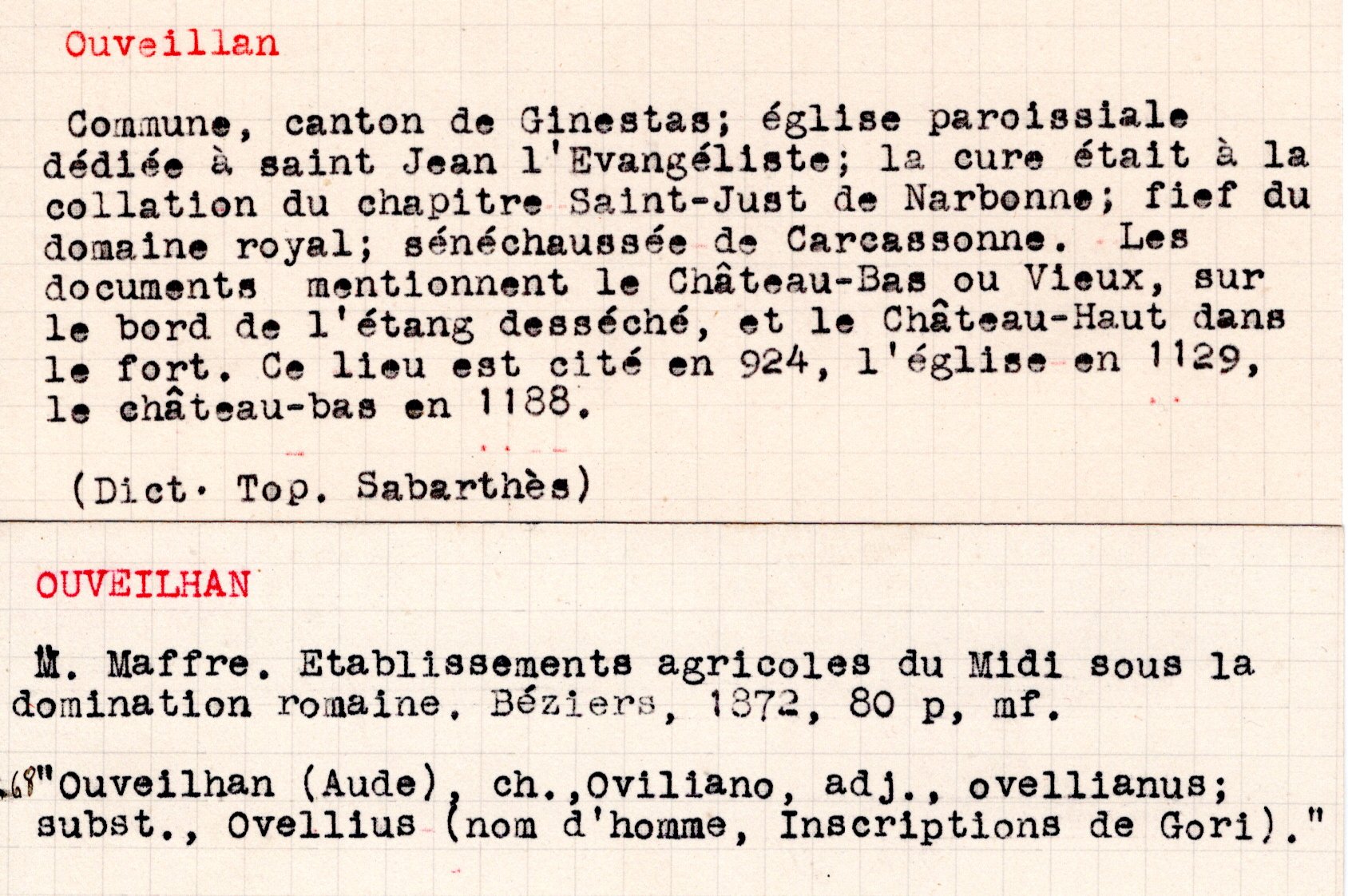 | Mémoires de la cure et des curés d’Ouveillan | Larguier G. | Ouveillan | Note d’histoire audoise | 1978 | T. LXXVIII | p. 94 |